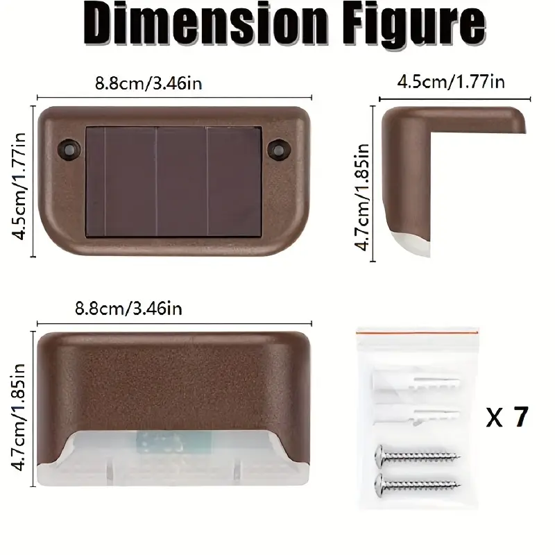 Installation is incredibly simple—no electrician needed, no wiring required. Each light can be mounted on stairs, decks, rails, fences, gardens, patios, pathways, retaining walls, and balconies using screws or strong outdoor adhesive. Their low-profile design blends seamlessly with wooden, concrete, and metal surfaces while providing strong visual enhancement at night.