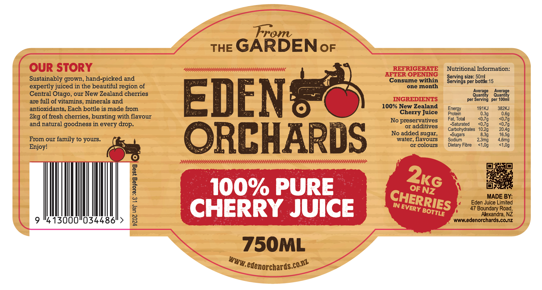 it with your favourite drink for a guilt-free treat. Enjoy it hot or cold, Eden Orchards Cherry Juice is the must-have in your cupboard.