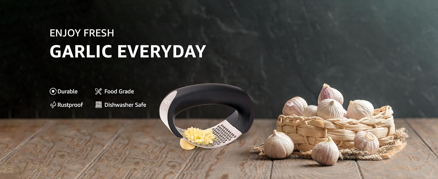 - [Stainless Steel Durability]: Made from premium stainless steel, this stainless steel garlic press is rust-resistant and durable, making it a reliable garlic press for years.