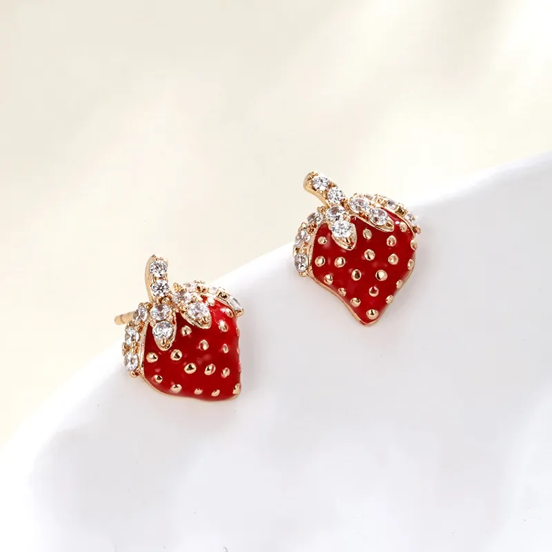 Cute Red Strawberry Fruit Inlaid Zirconium Stud Earrings