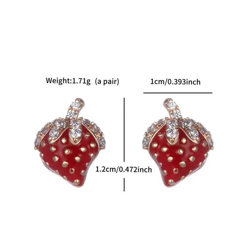 Cute Red Strawberry Fruit Inlaid Zirconium Stud Earrings