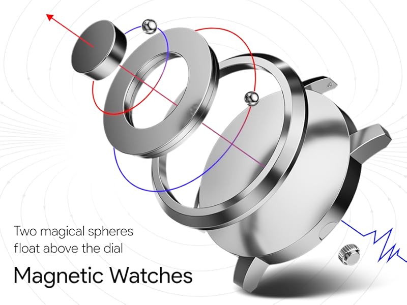 - Futuristic Men's Watches: 2 spheres float above the 40mm dial with a 20mm adjustable strap - inner=minute, outer=hour, breaking convention and ensuring time accuracy & strong magnetic force with a unique design