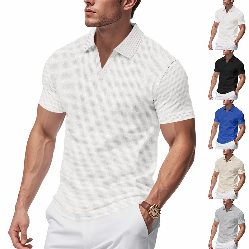 Summer Men’s Loose Leisure Sports V-neck Waffle Polo Shirt – Casual & Comfortable