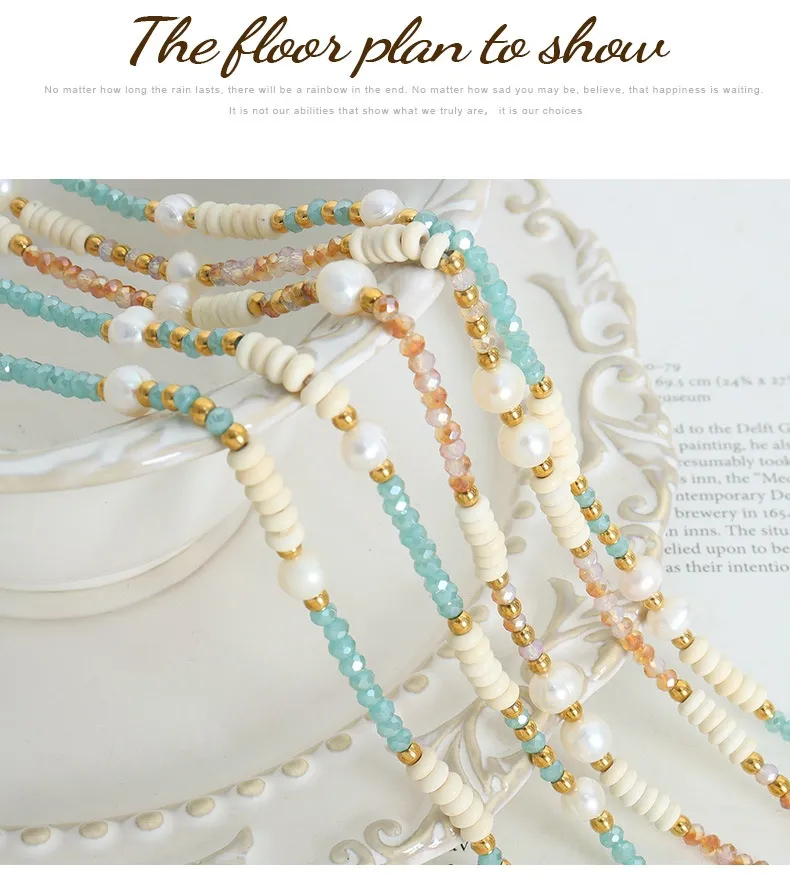 Titanium Colorful Ball Chain Natural Freshwater Pearl Glass Stone Necklace Wild Titanium Steel Bead String Jewelry