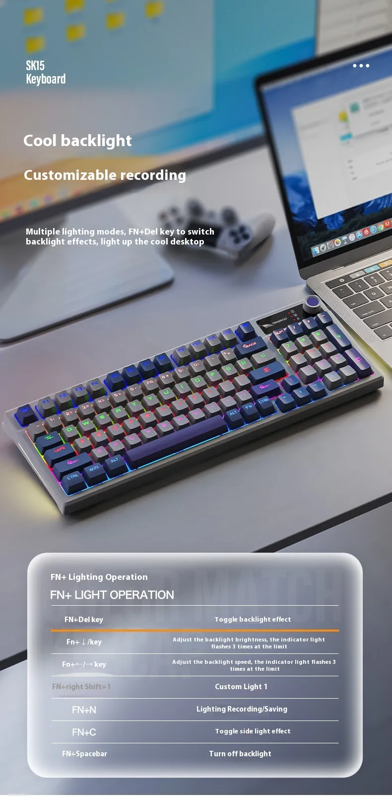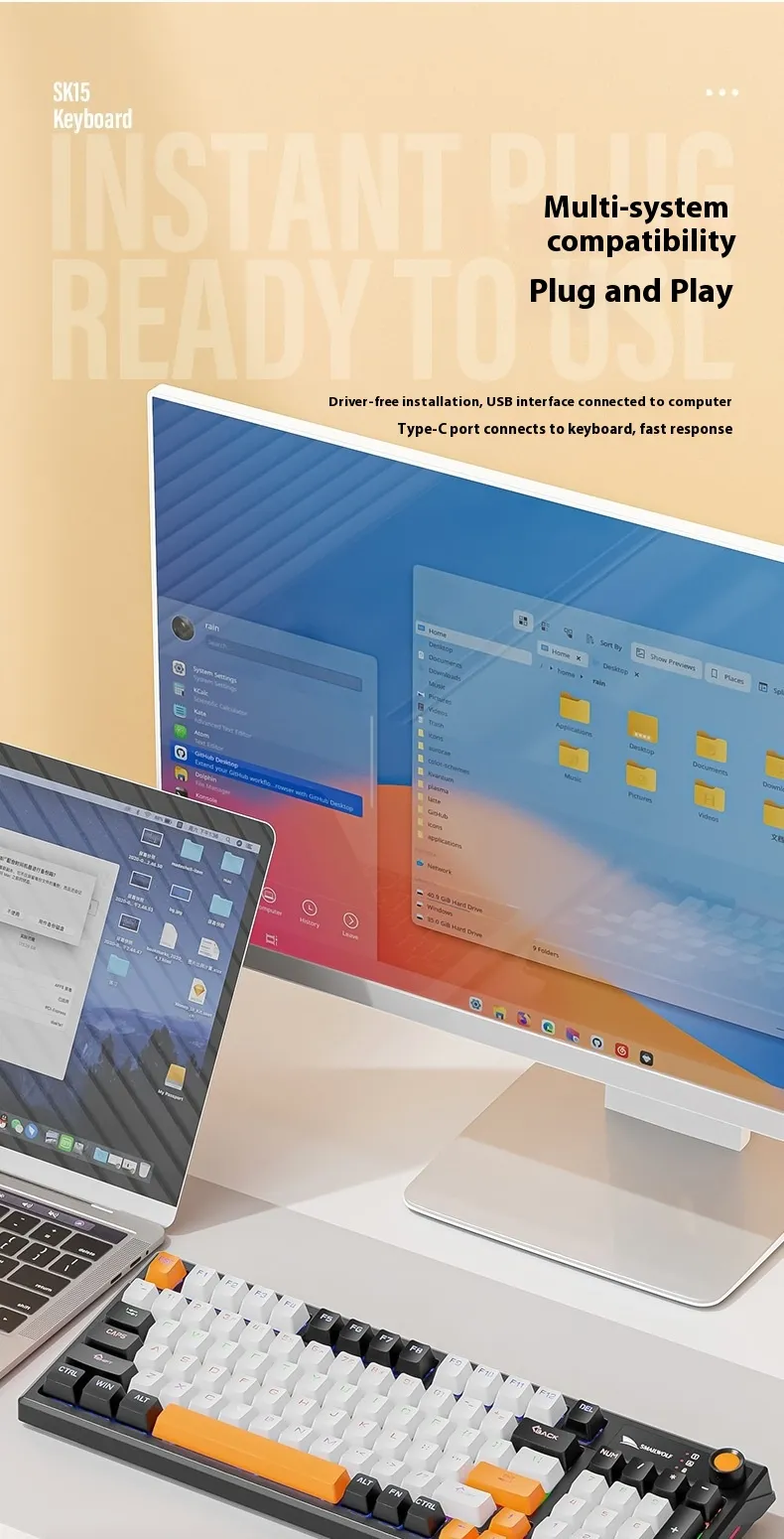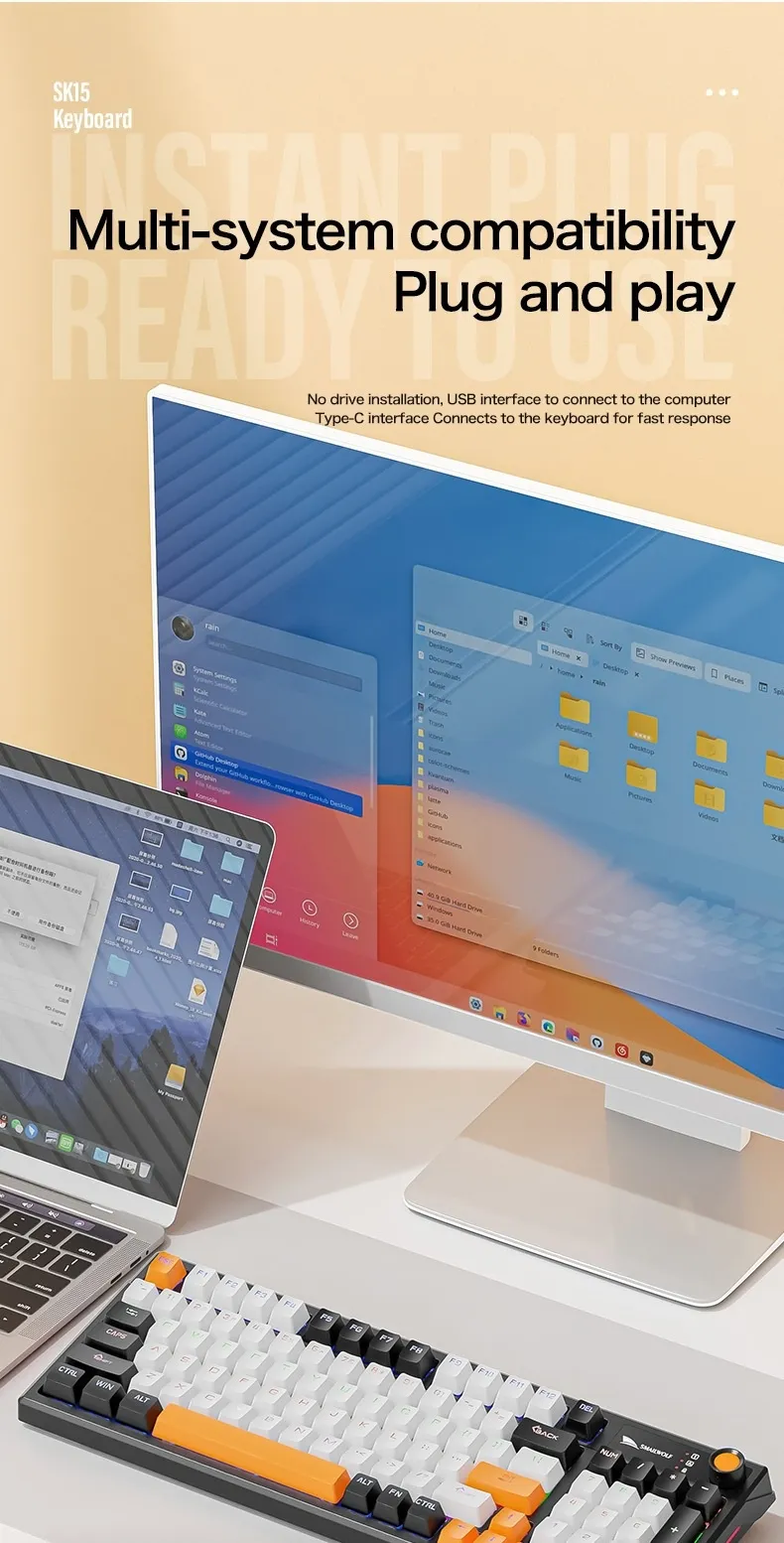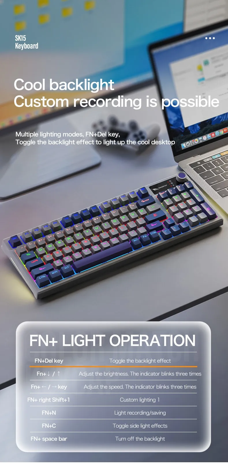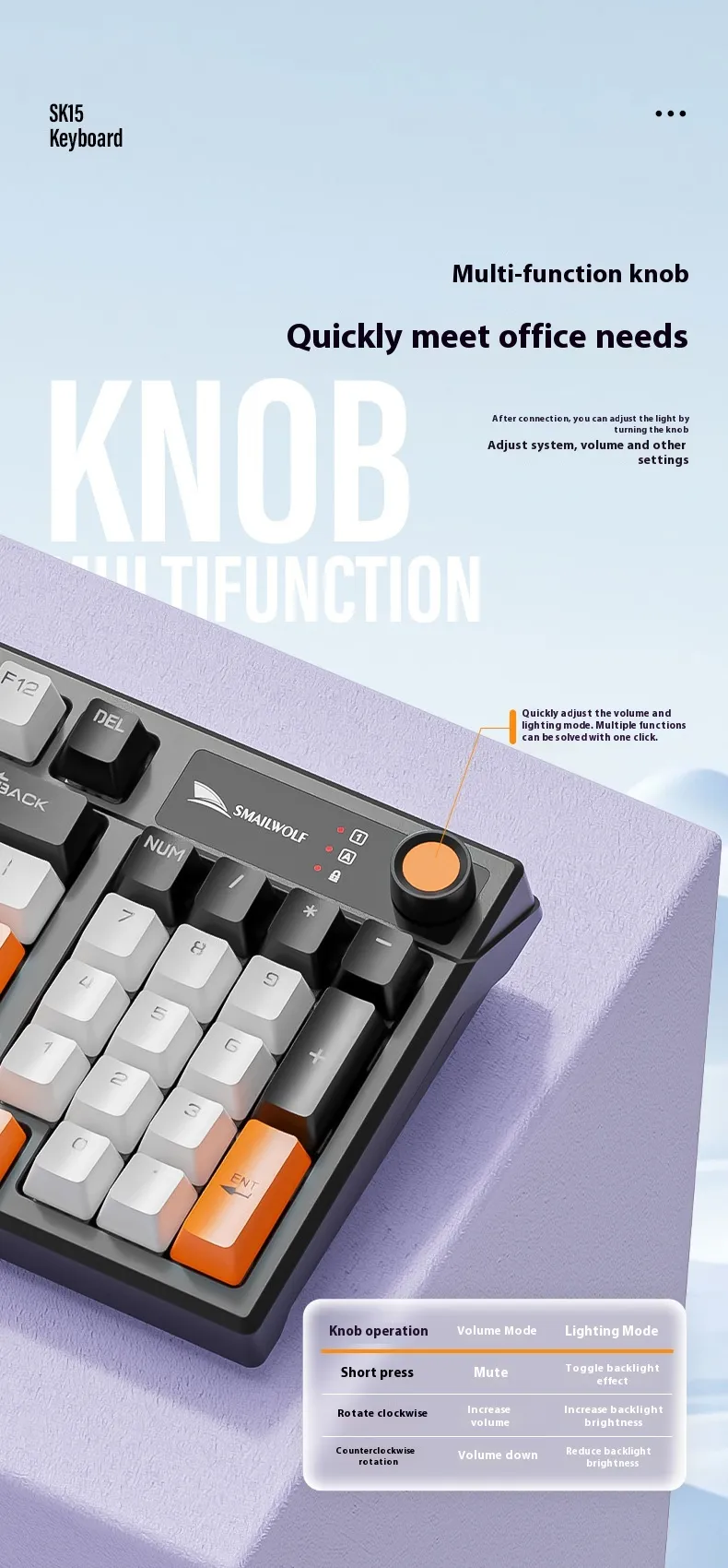 The built-in rotary knob allows you to adjust volume, switch lighting modes, or customize functions on the fly. This convenient feature gives gamers and professionals quick access without leaving the keyboard, improving efficiency for both gaming and productivity tasks.