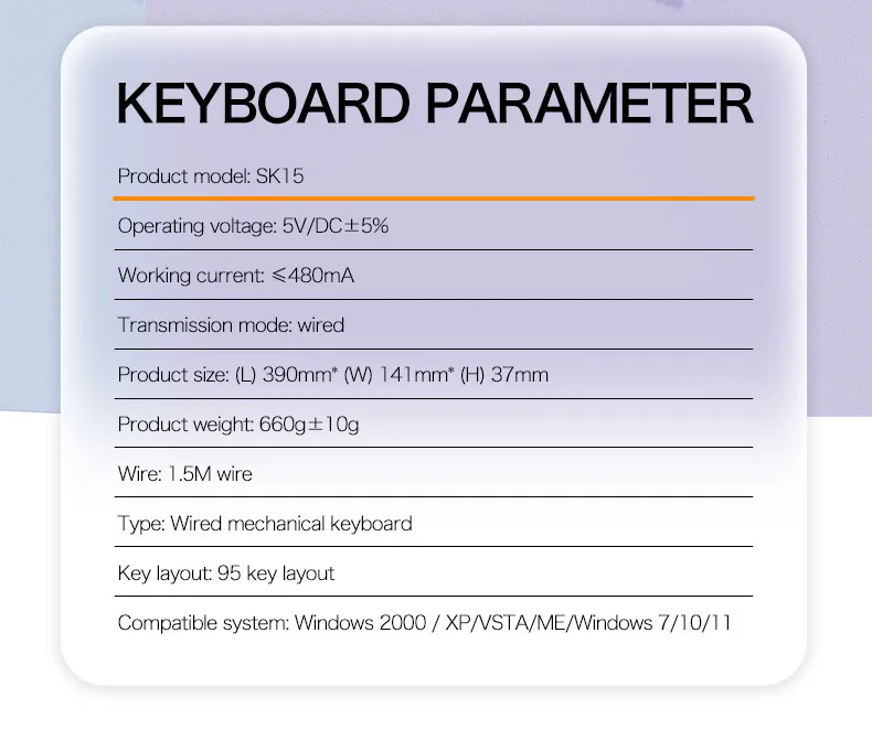 orange],SK15 wired mechanical keyboard mixed light green shaft [Autumn Water Blue]]
