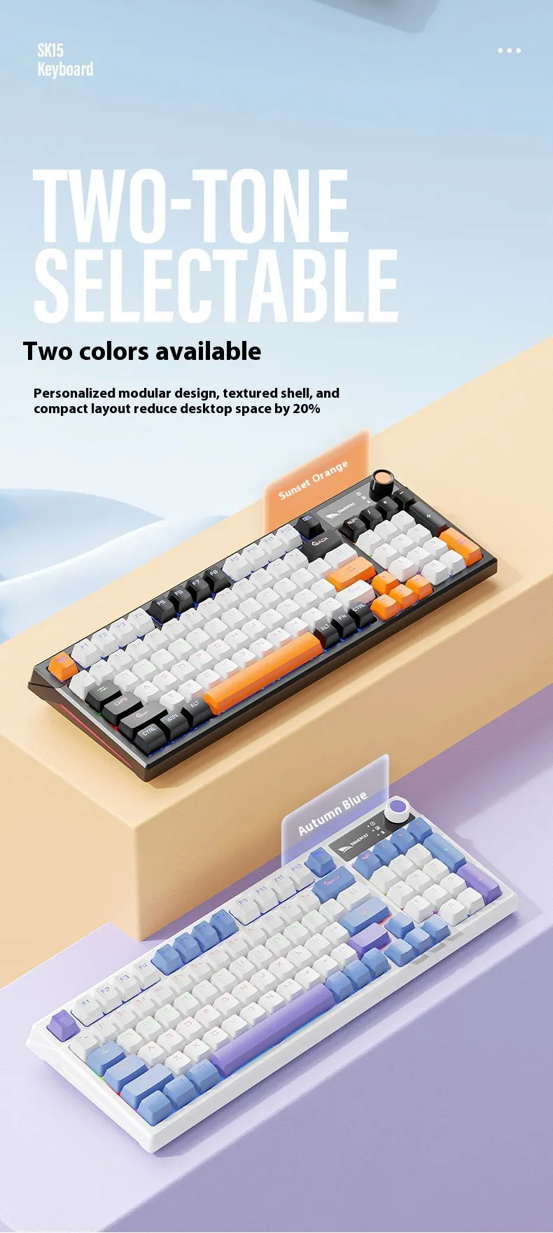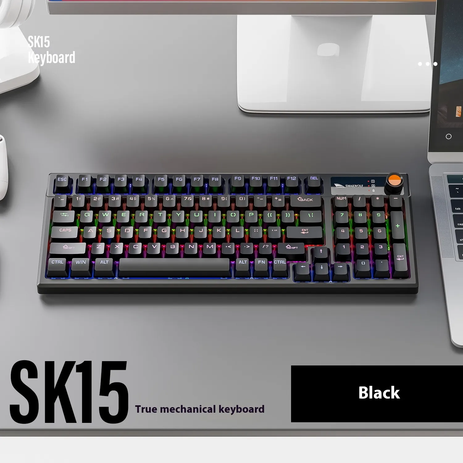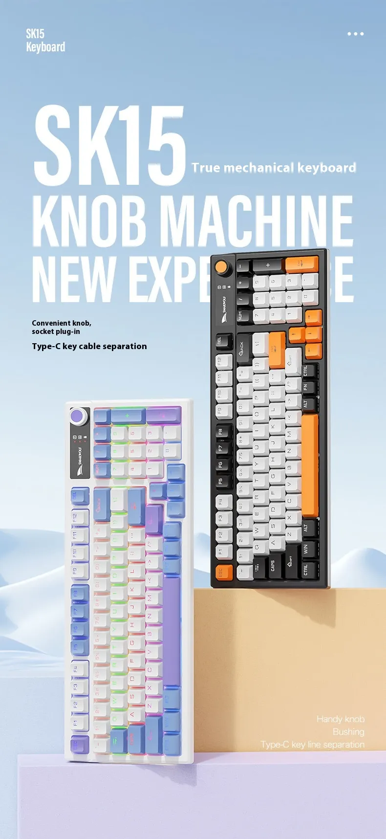 Color: SK15 wired mechanical keyboard mixed light green shaft [Black],SK15 wired mechanical keyboard mixed light green shaft [sunset