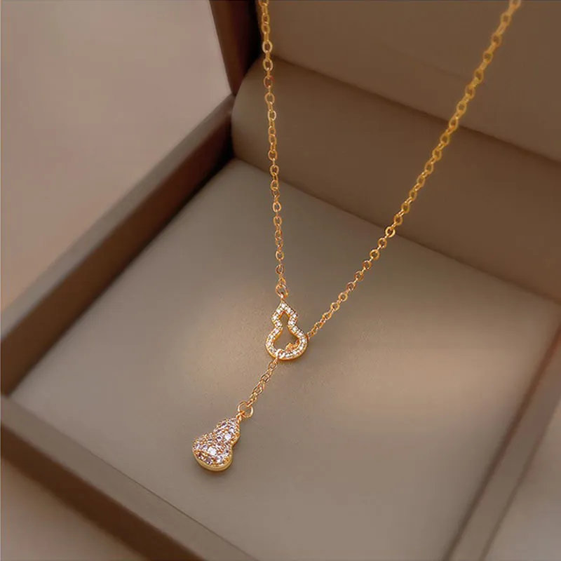 Color: gold rhinestone gourd necklace