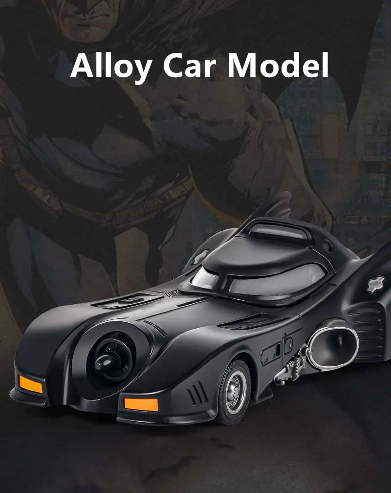 The 1/24 Classic Movie Car Alloy Batmobile Bat Sports Car Model is an exquisitely crafted diecast metal model that brings the iconic Batmobile to life. Inspired by the Batmobile from classic movie series, this detailed model features realistic sound, light, and simulation features to provide an immersive and entertaining experience for both collectors and kids alike. Perfect for movie enthusiasts and model car collectors, this Batmobile is a must-have addition to any collection.