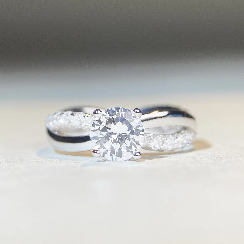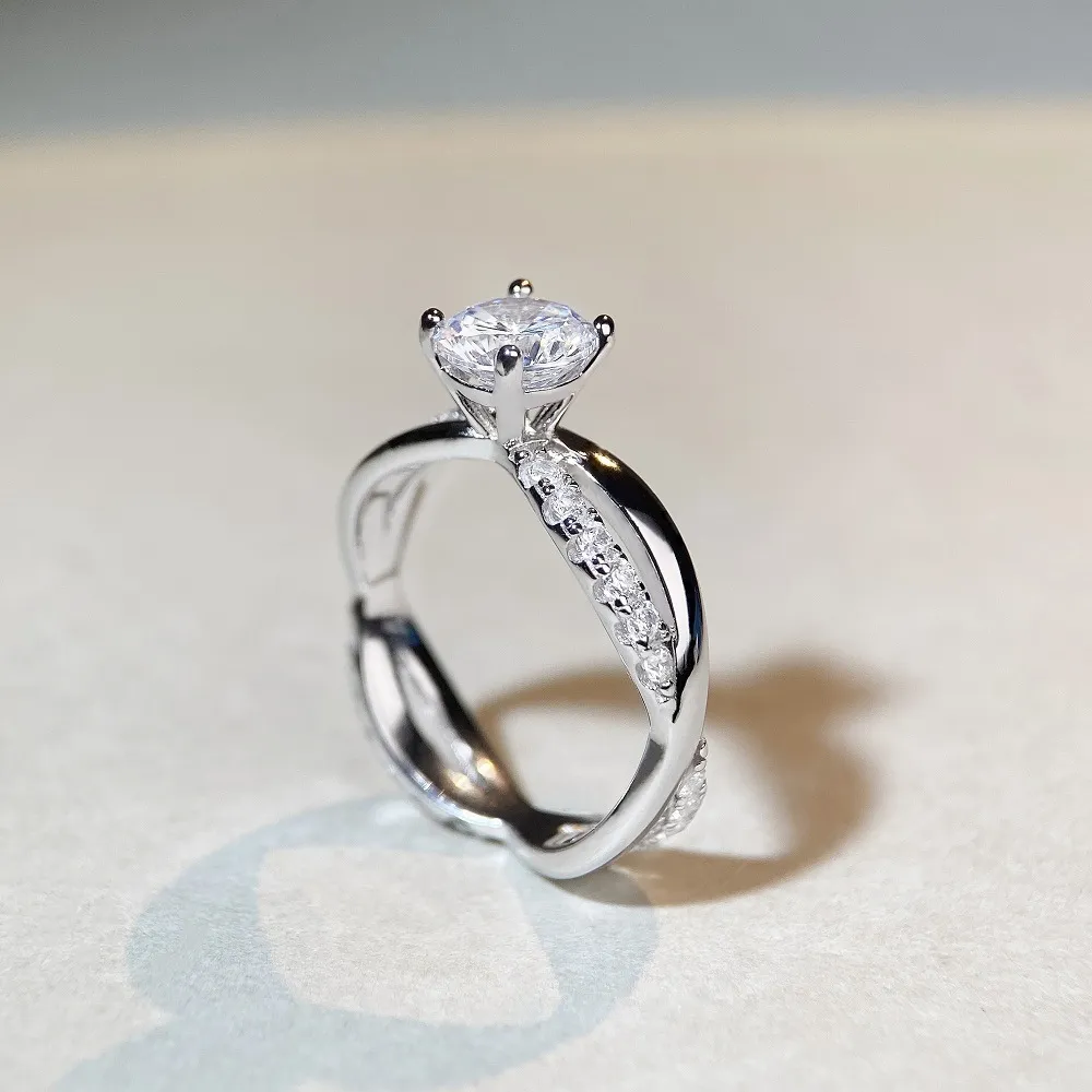 1 Karat Classic Four-claw Ring Winding Twisted Arm Moissanite