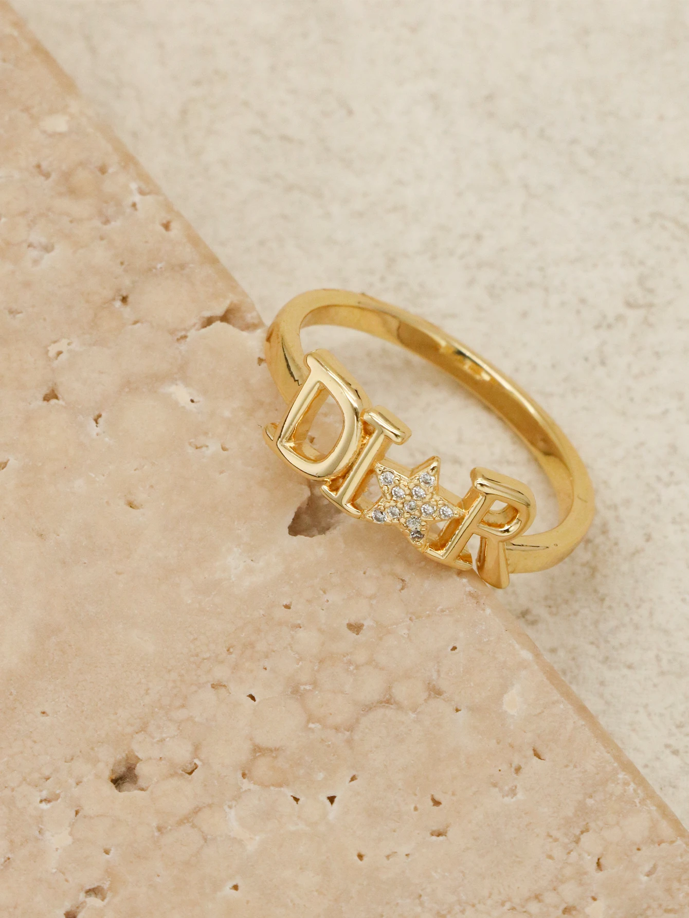 Incorporating a star accent alongside the "D," the design adds a whimsical and charming touch. The star detail enhances the overall look, bringing a bit of sparkle and playful elegance to the piece. This feature also gives the ring a sense of balance and movement, making it eye-catching and unique.
