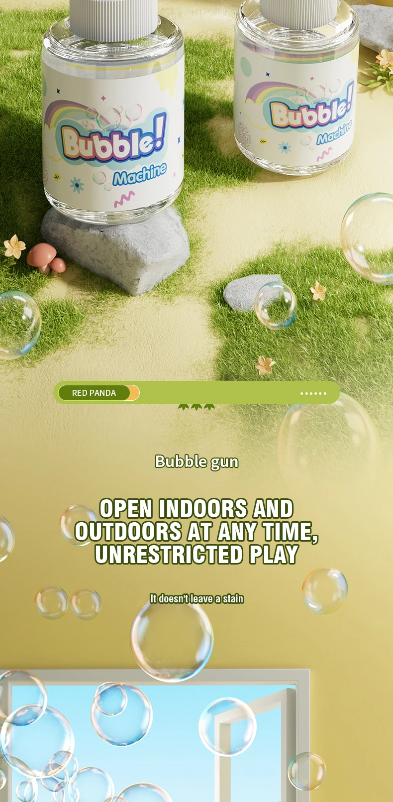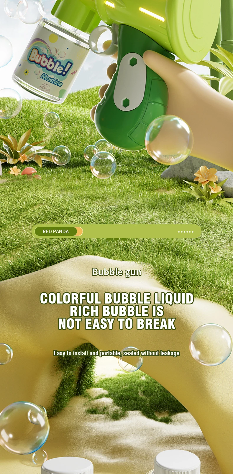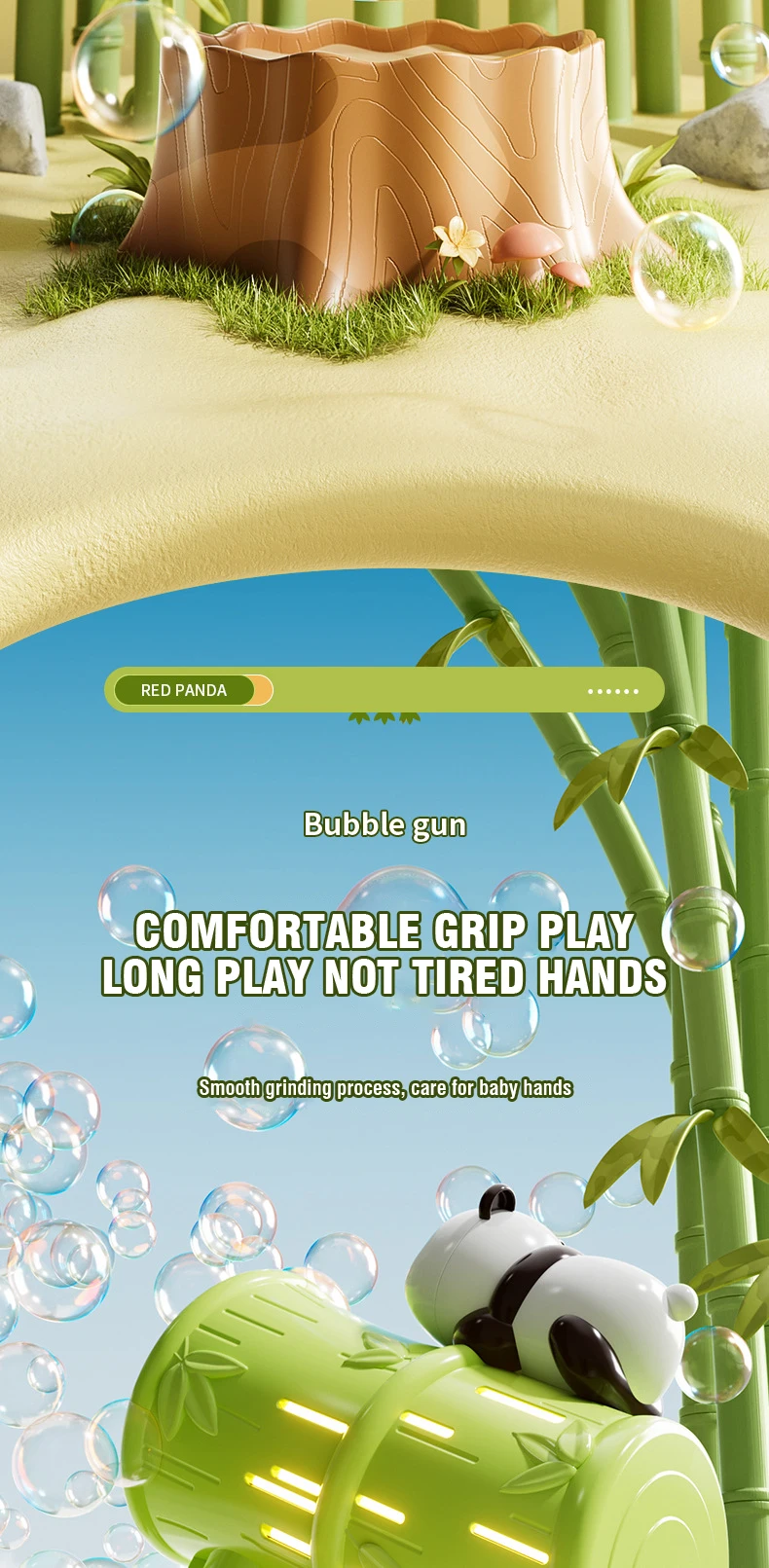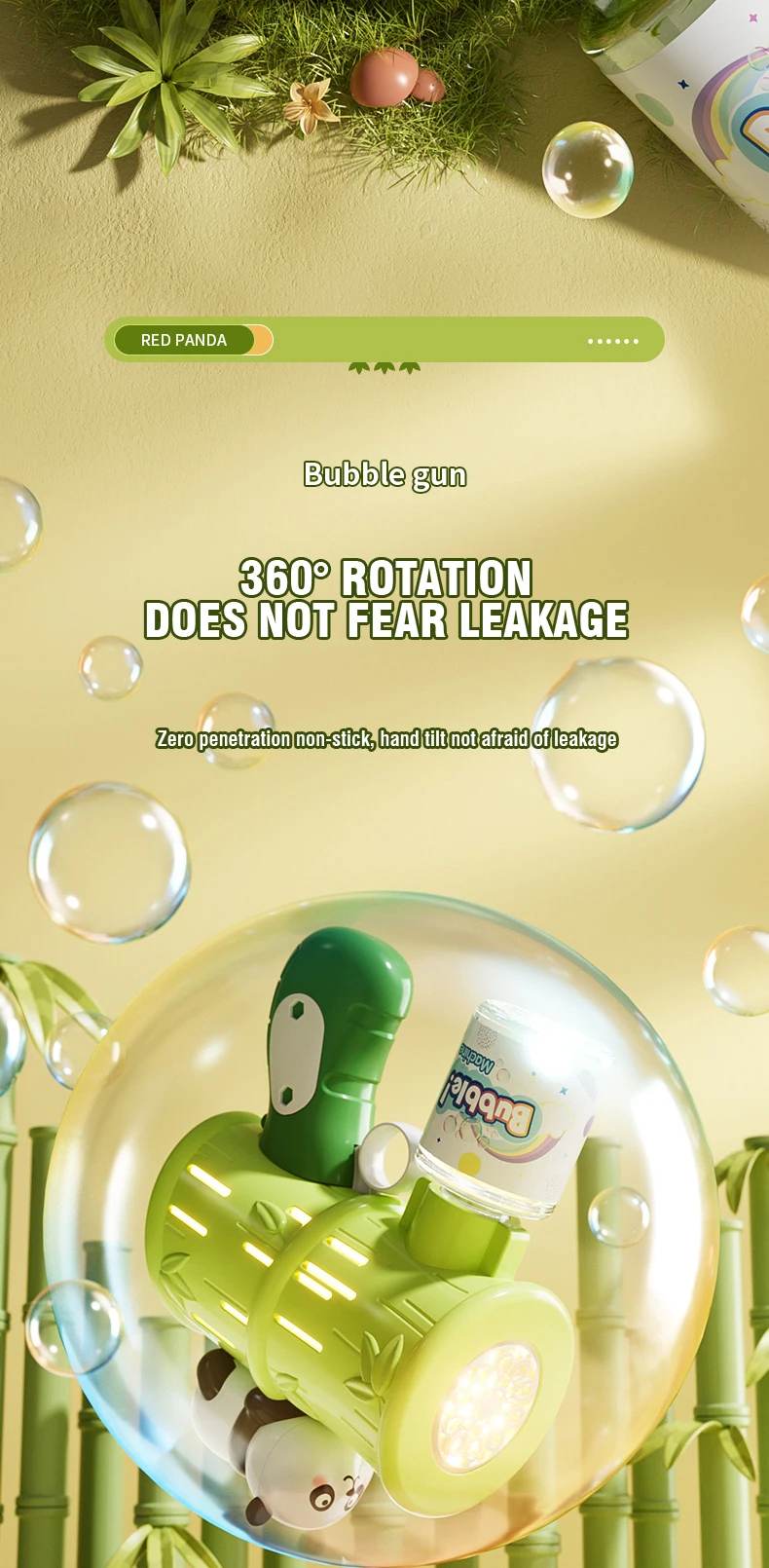 - The bubble gun features a cute and engaging panda design that kids will love. Its playful appearance makes bubble blowing even more enjoyable for children.