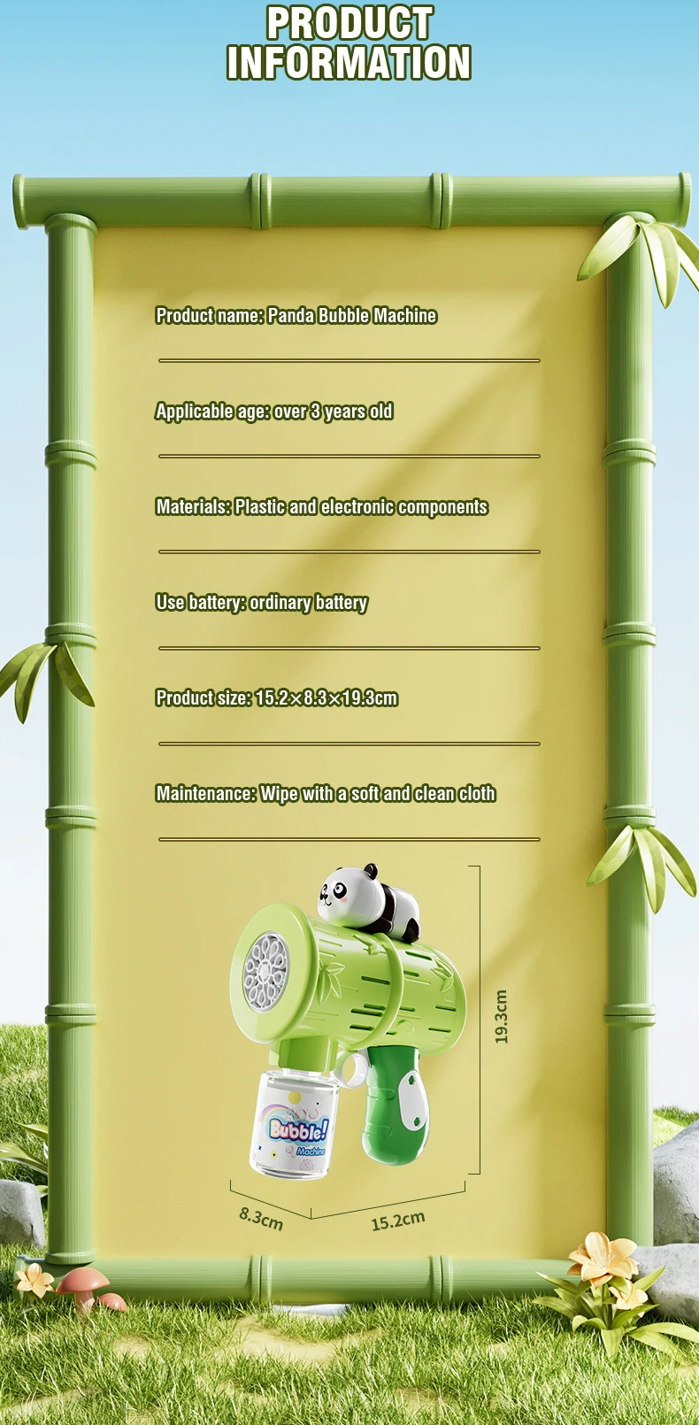 - The bubble gun features a cute and engaging panda design that kids will love. Its playful appearance makes bubble blowing even more enjoyable for children.
