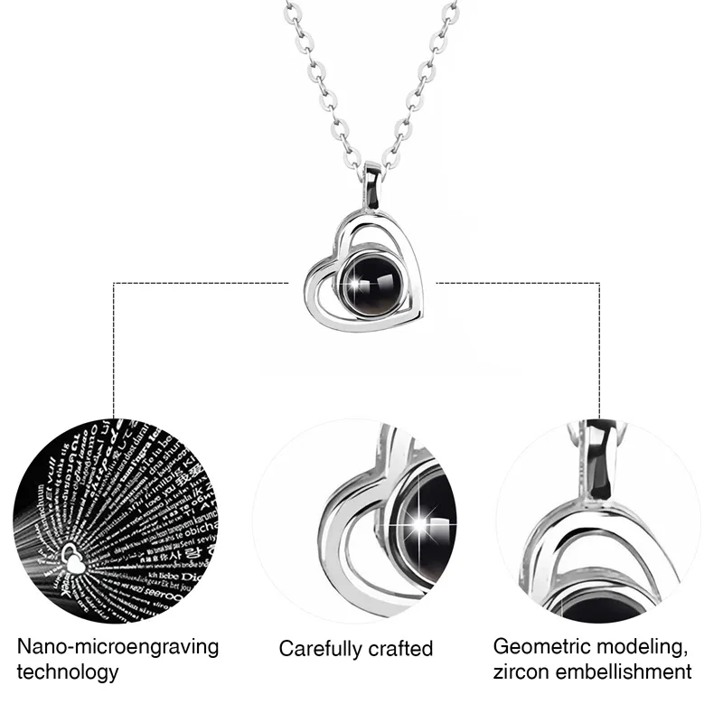 100 Languages of "I Love You": The crystal pendant contains the phrase "I love you" engraved in 100 different languages,