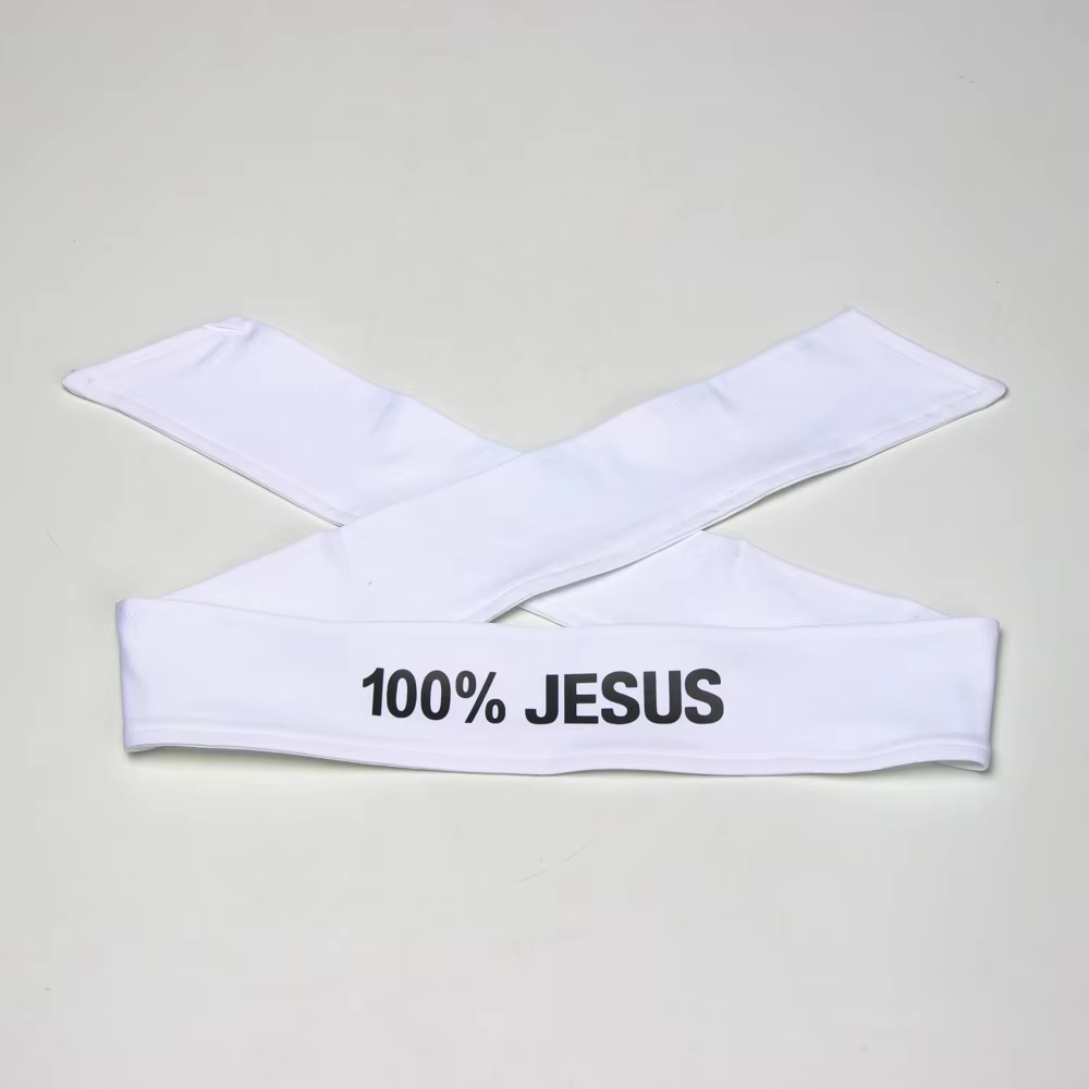 The durable stretch material provides a secure fit, making it ideal for all-day wear whether you're hitting the gym, going for a run, or engaging in high-energy sports. Its bold "100% JESUS" print adds a personal touch, perfect for athletes who want to showcase their beliefs while staying focused on their goals.