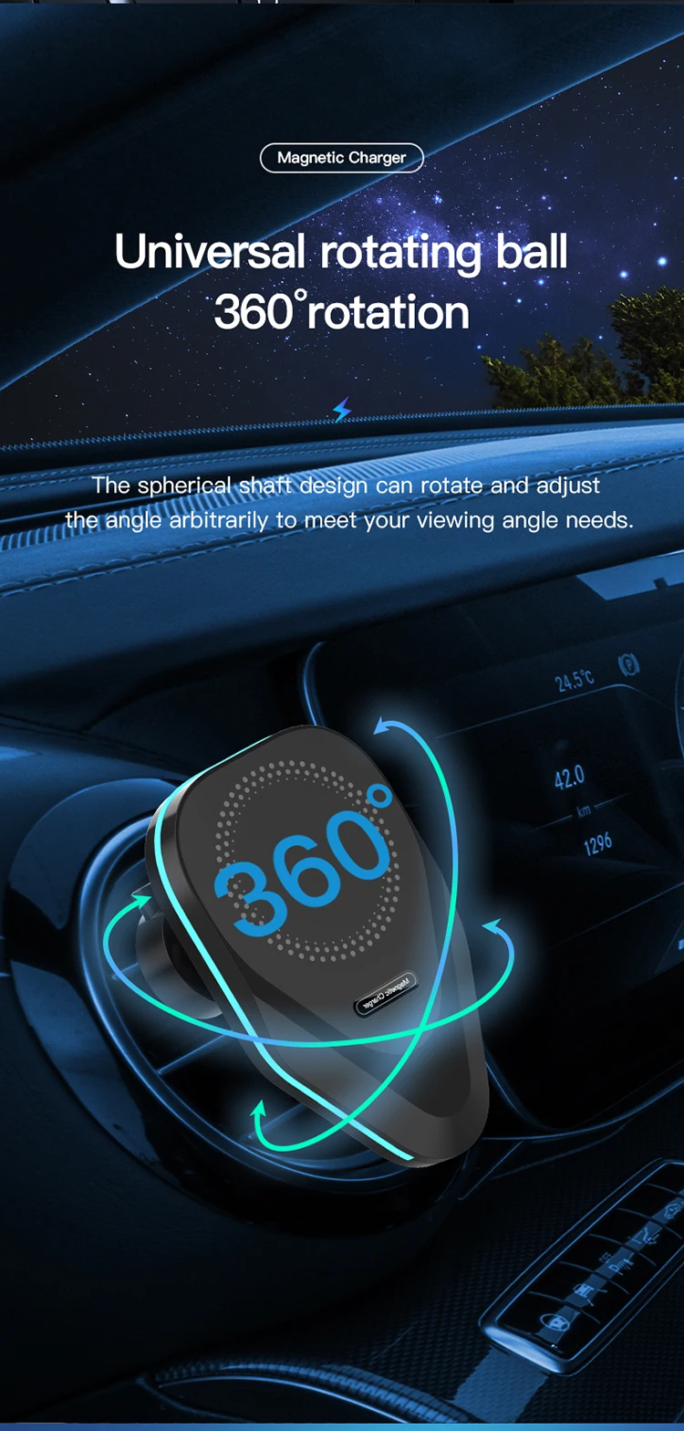This car charger is designed to provide both secure mounting and fast wireless charging for your iPhone. The magnetic alignment ensures your phone is perfectly positioned for optimal charging efficiency. The 100W output delivers exceptionally fast charging, significantly reducing the time your iPhone needs to reach full battery. The holder supports a wide range of viewing angles, making it ideal for navigation and hands-free calls.