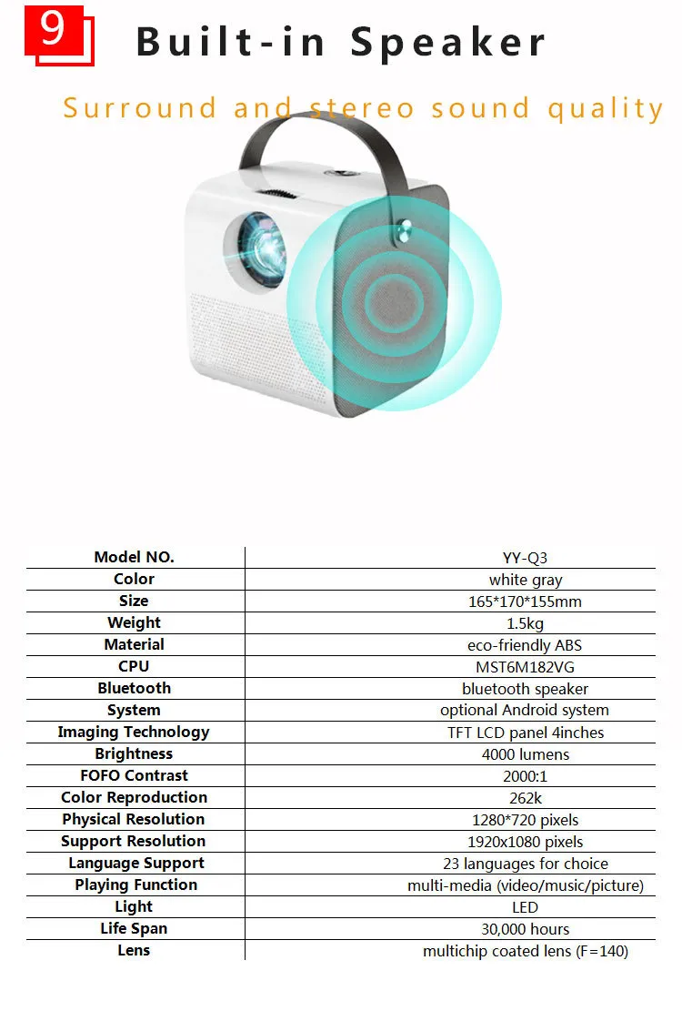 Whether you’re hosting a movie night, enjoying a gaming session, or presenting in a professional setting, the 1080P HD Portable Projector