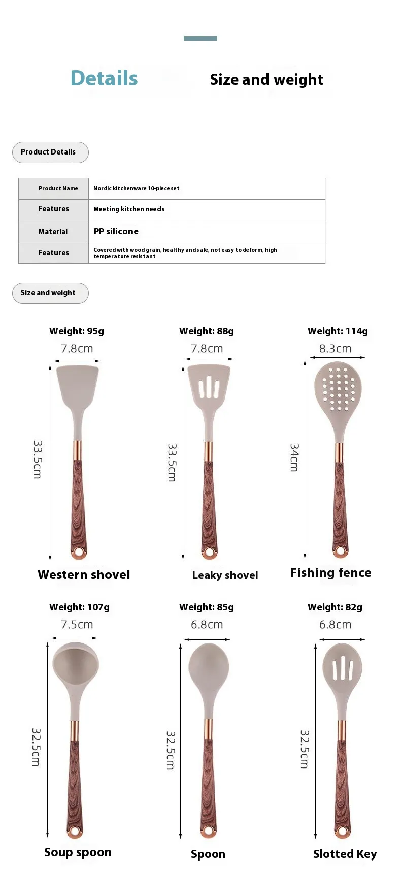The set’s coordinated design ensures that each piece works well together — matching both in aesthetic and function — making storage and organisation simpler. The tools are lightweight yet robust, easy to store in drawers or utensil holders, and ideal for kitchens where both style and performance matter.
