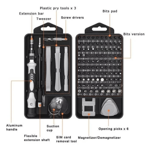 115 in 1Â professional mini screwdriver tool kit is design by thousands of repair data refining, include the most