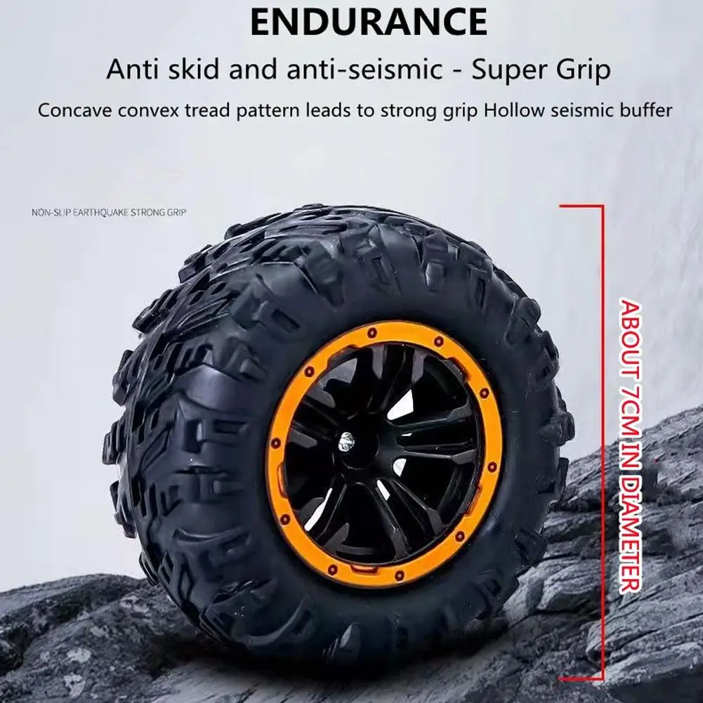 The 4WD system allows the car to handle all types of terrain, providing excellent traction and stability. Whether it's dirt, rocks, or mud, this RC car ensures you can race and explore without worrying about the terrain.