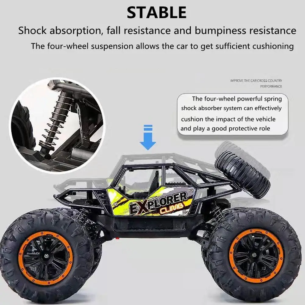 The car’s shock-absorbing suspension and rugged build make it suitable for outdoor play, while its durability ensures it can withstand the elements, whether you're racing through rough terrain or climbing obstacles.