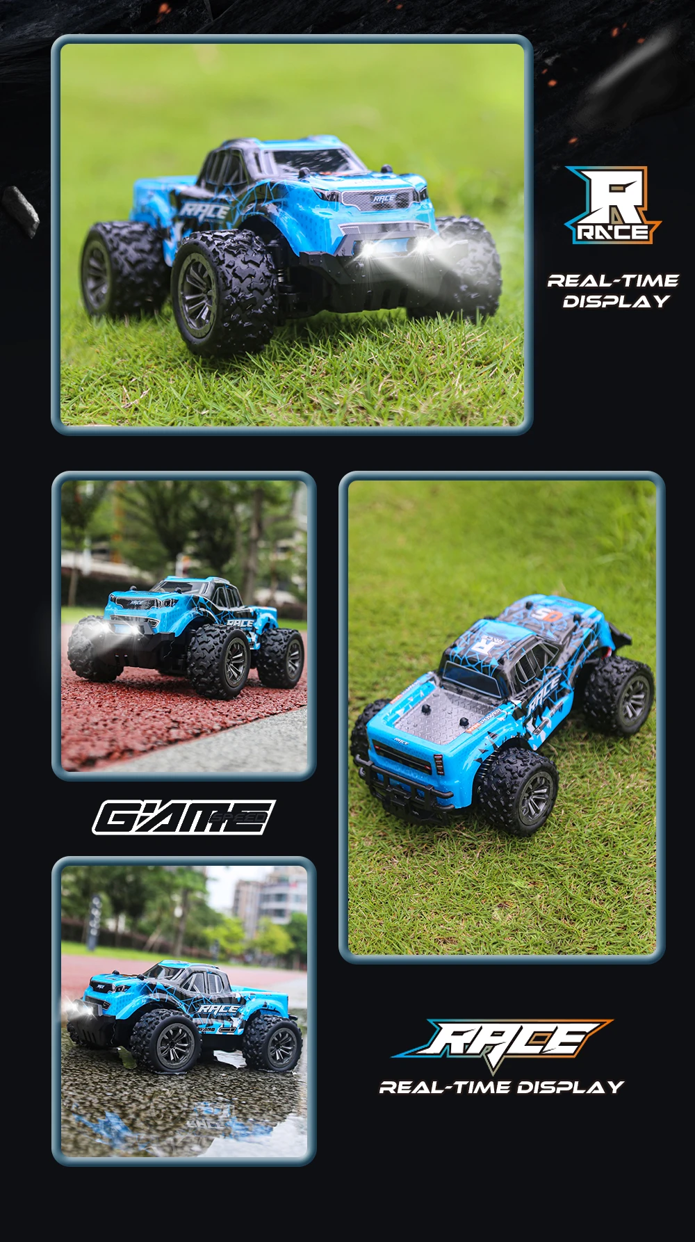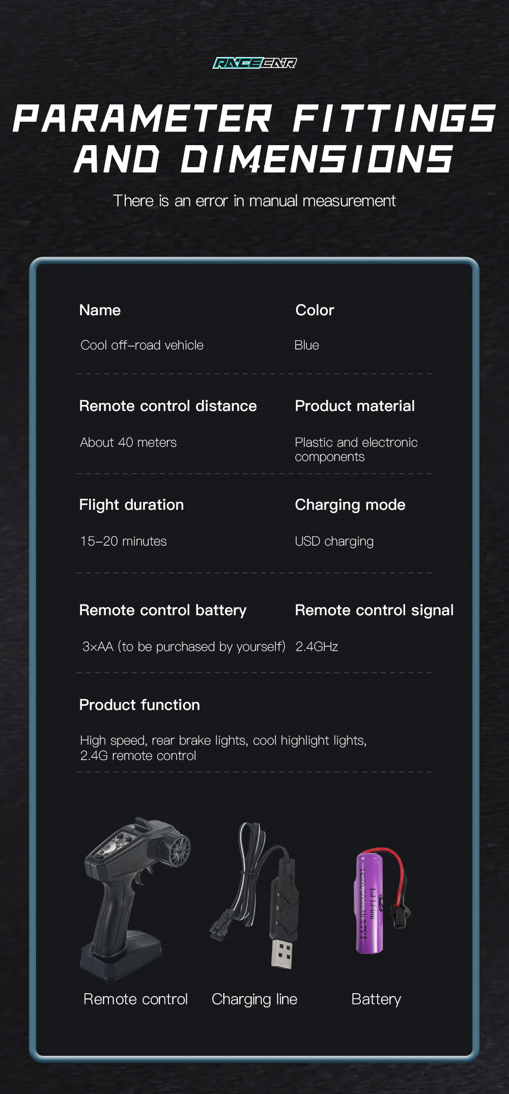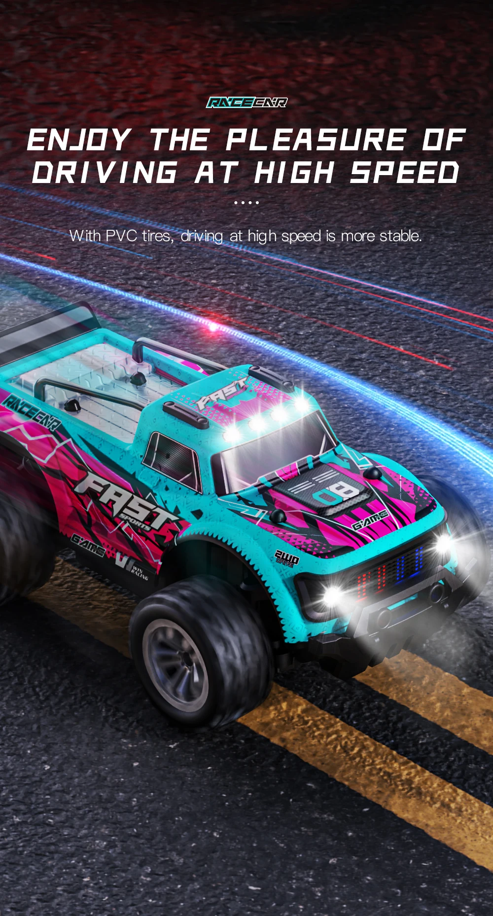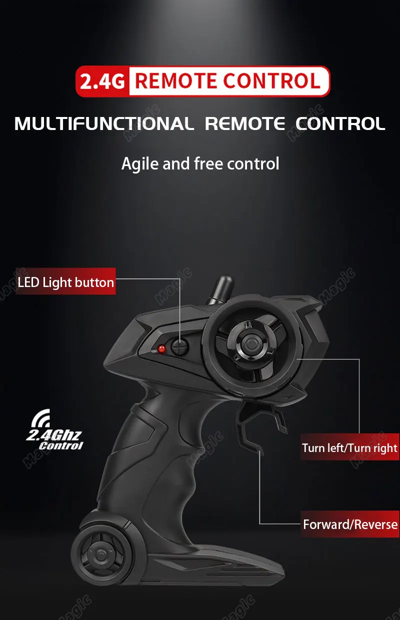 1. Adopting simulation structure design, with the sense of handling of a real car, realising full-size scale model, high-speed driving, accelerating, decelerating, braking, reversing, turning left and turning right.