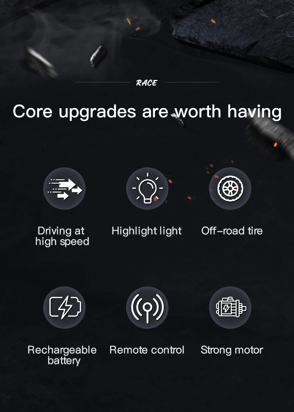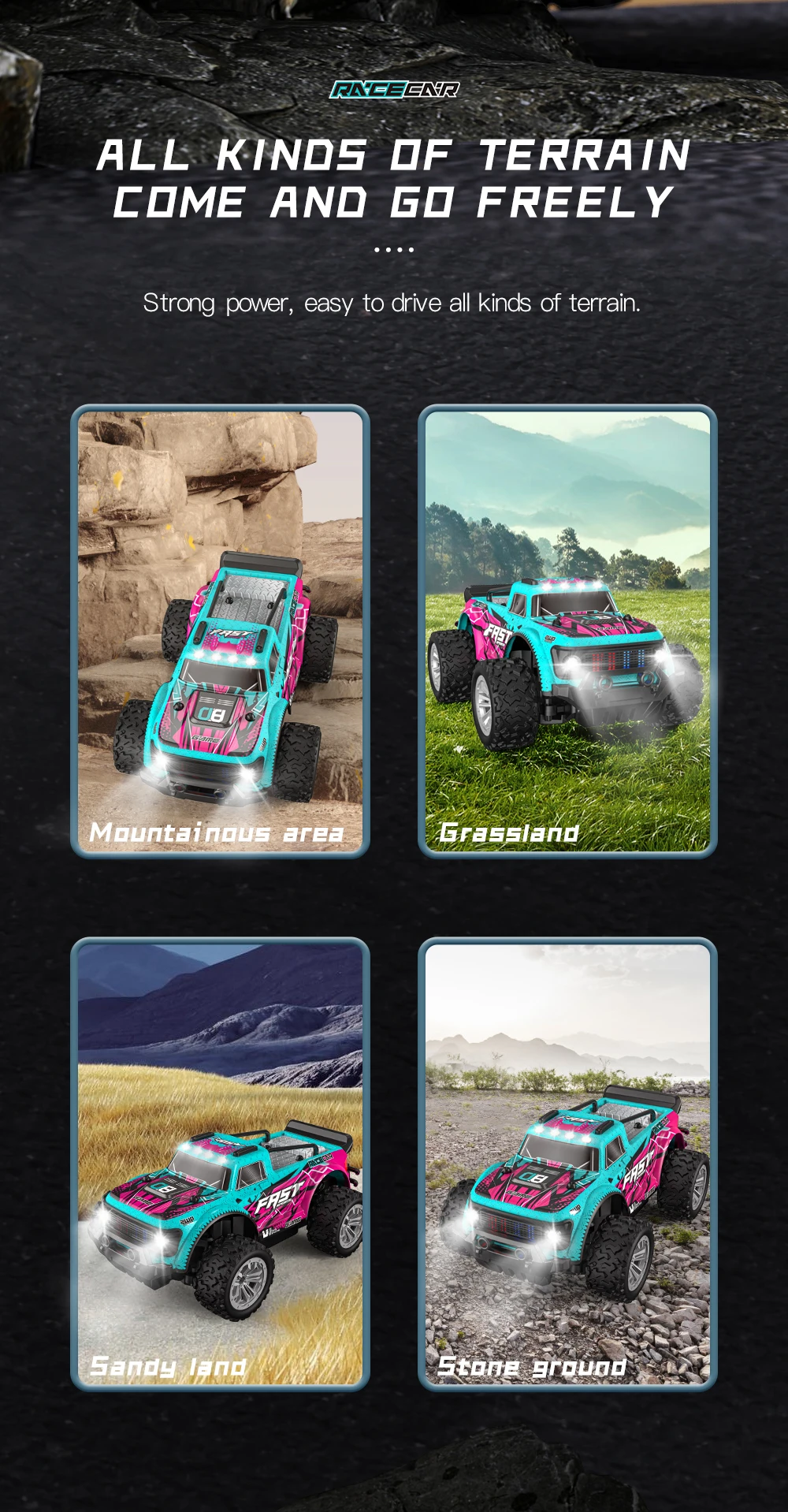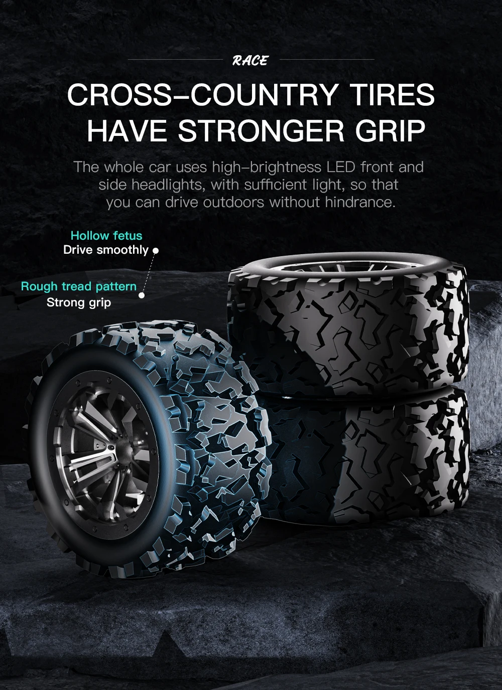 4. Simulated off-road tyres with strong grip.