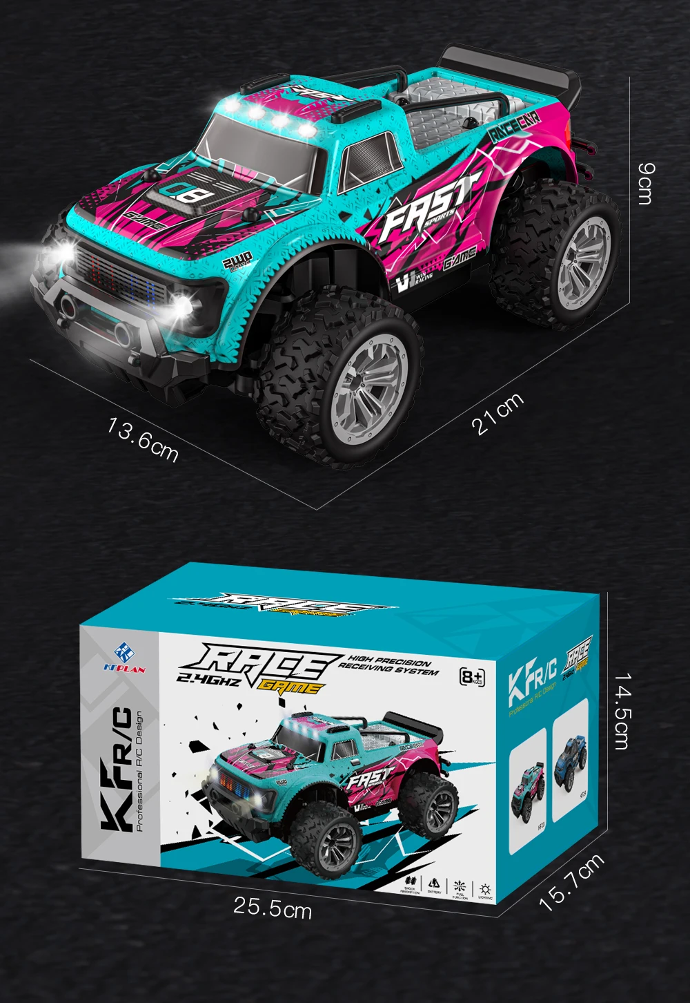 This 1:16 scale RC car features 2WD and LED lights, achieving speeds up to 20KM/H. Designed for high-speed off-road climbing, it operates on a 2.4G frequency for precise control. Perfect for boys, girls, and kids, this remote control car offers thrilling outdoor fun.