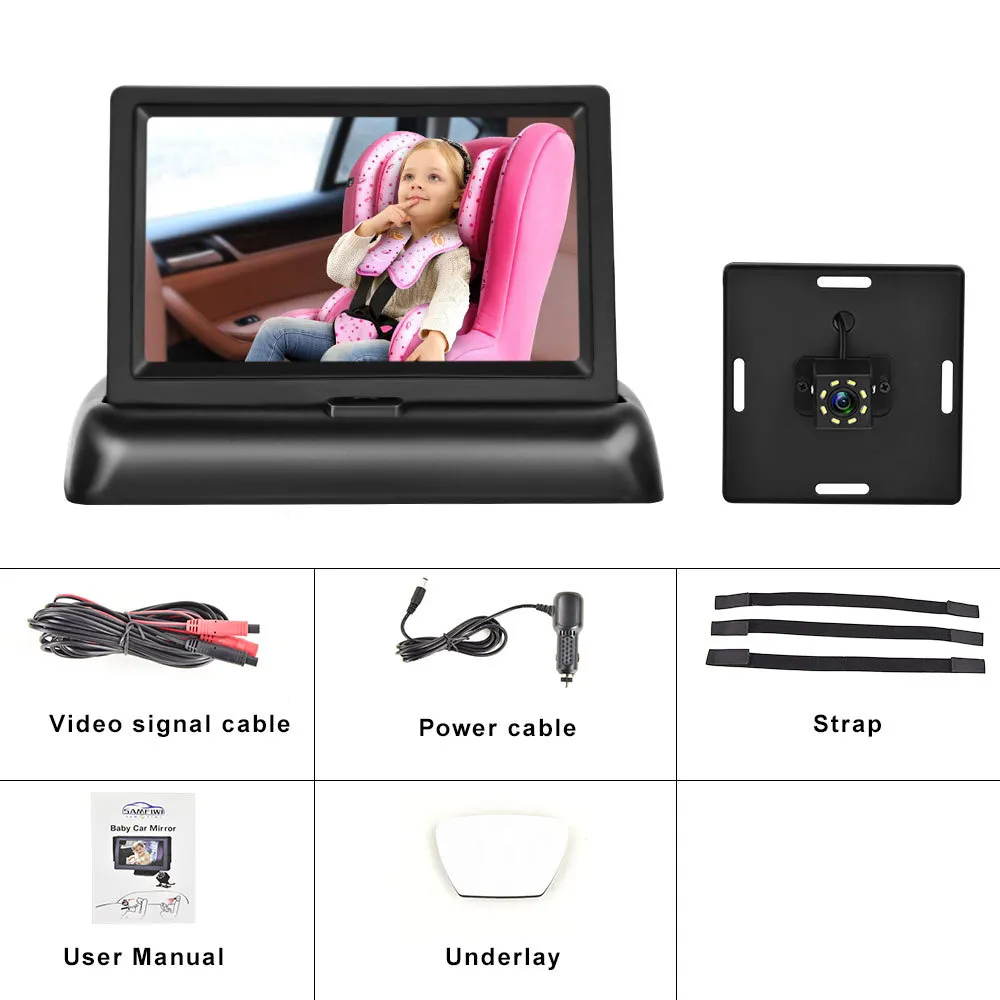 12-24V Folding Screen Baby Monitoring System for Cars – Night Vision Eight-Lamp Camera
