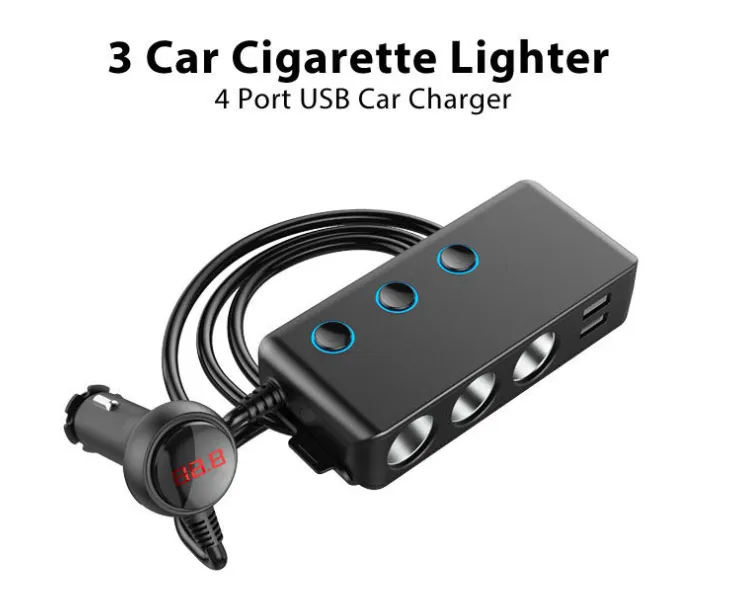 120W Car Charger With One To Three Cigarette Lighter With Independent Switch