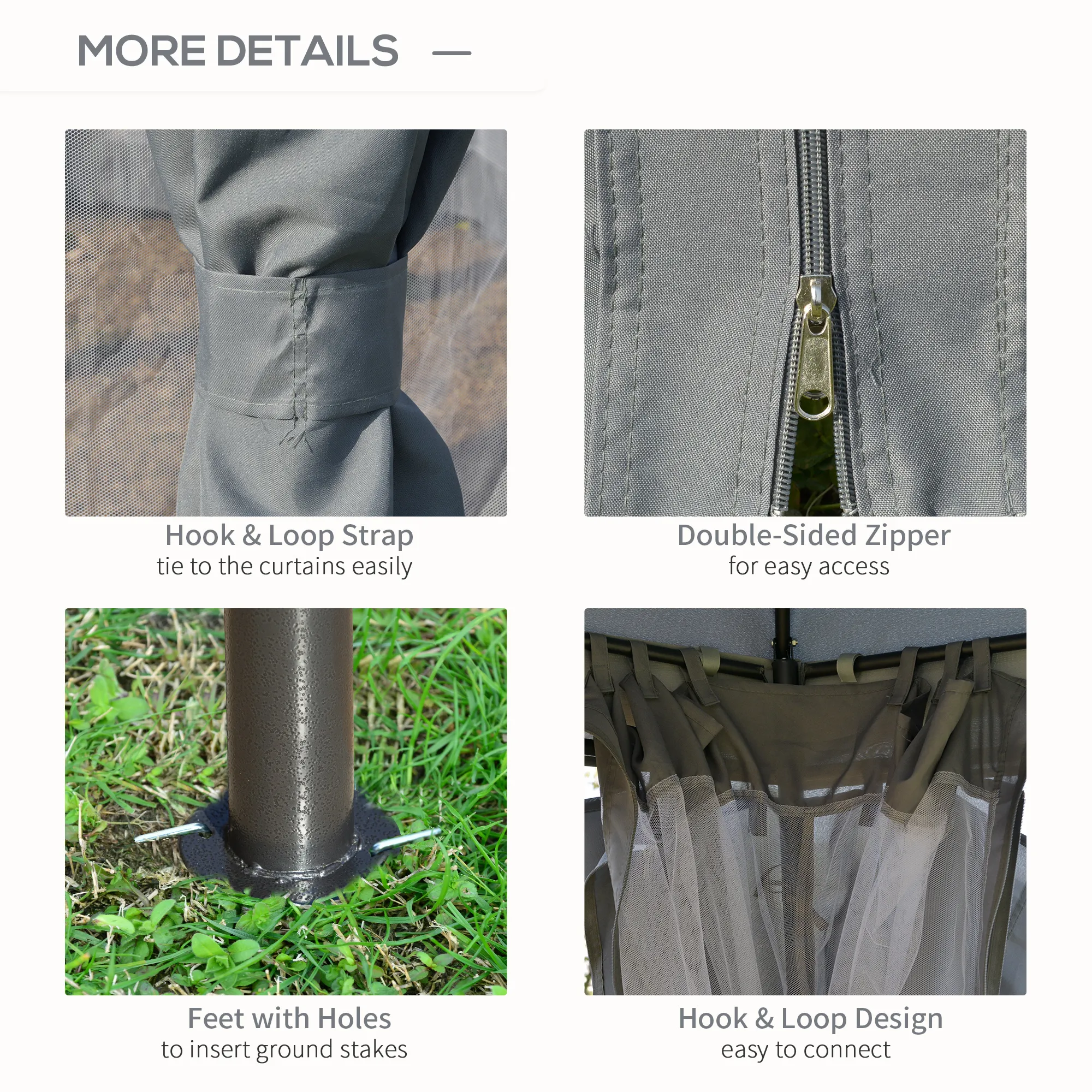 Optional Sidewalls and Panels: Enhance privacy and insect protection with mesh screens, curtains, or solid panels.