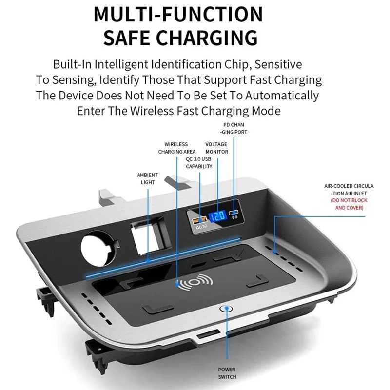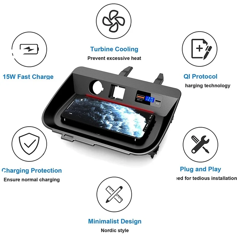 ![]() ![]() ![]() ![]() ![]() ![]() ![]() ![]() ![]() The 15W Car Wireless Charger is designed specifically for Toyota RAV4 models from 2019 to 2021, offering a seamless and convenient charging solution for your devices. Featuring QC 3.0 fast charging technology, dual USB ports, and a 36W wireless charging pad, this charger ensures that your devices stay powered up while you’re on the go. Tailored to fit perfectly into the Toyota RAV4’s center console, this wireless charger is the ideal accessory for drivers who value efficiency, functionality, and style. Key Features