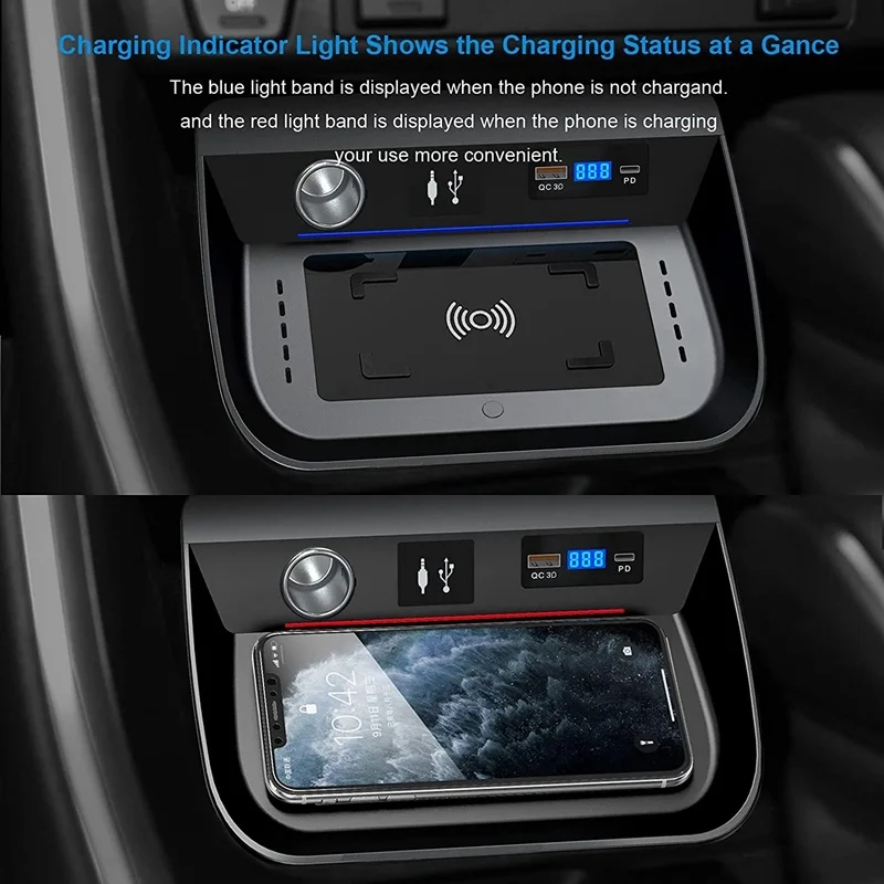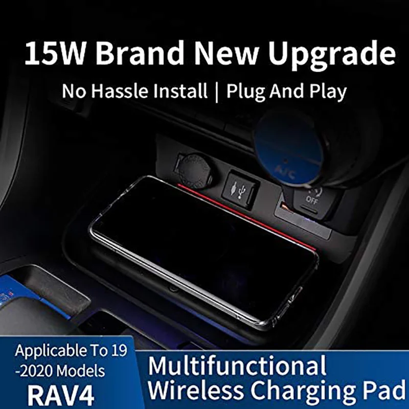 [Fitment]The wireless phone charger pad only fit for Toyota RAV4 2019 2020 2021,for any 4.7/5/5.5/6 Inches Qi enable smart phone.3D data from the car,won't affect your storage box function,No need to plug the cable,plug the charger directly into the cigarette lighter to use it,plug and charge.