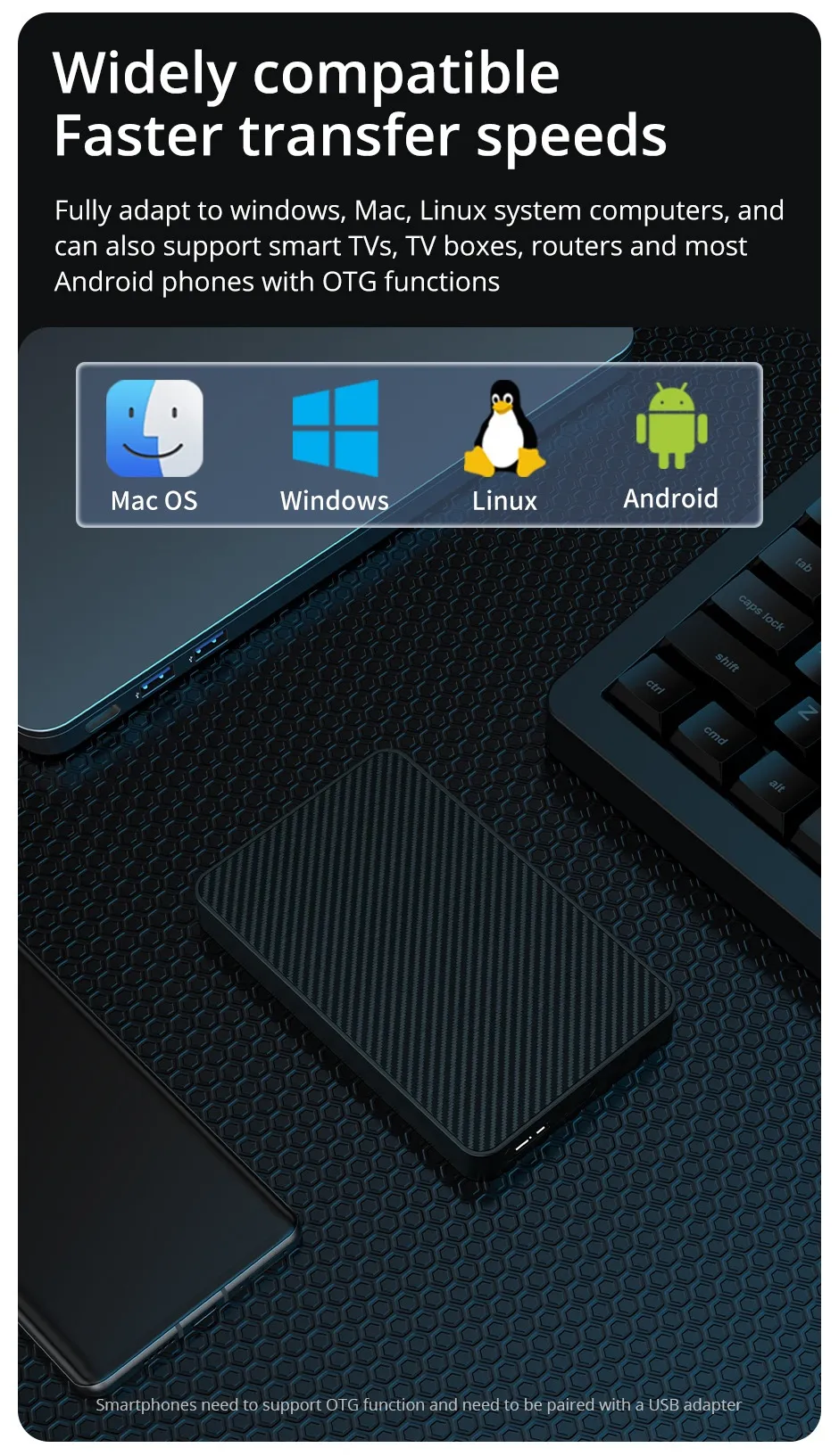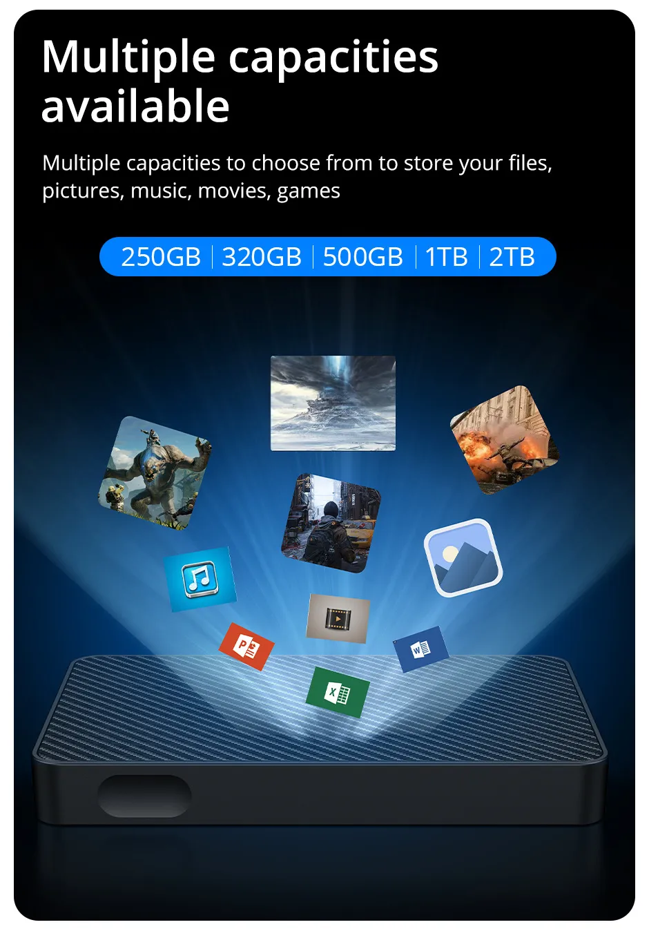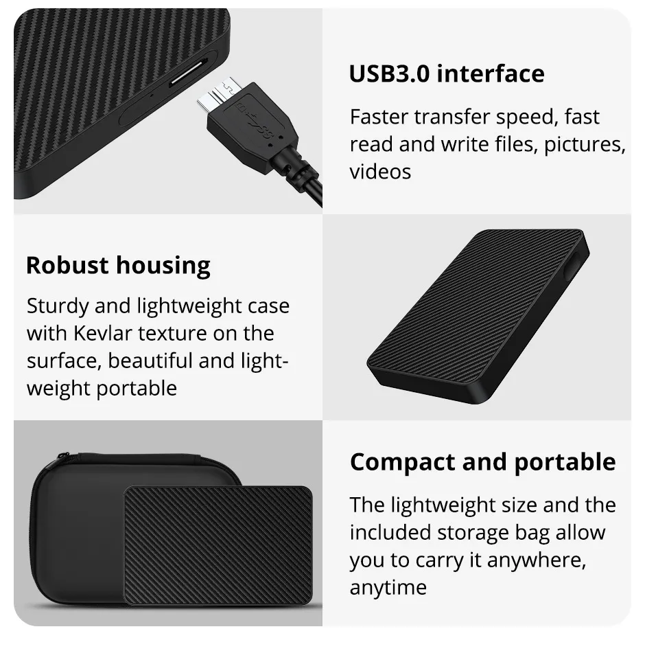 Equipped with a USB 3.1/Type-C high-speed interface, this portable hard drive delivers lightning-fast transfer rates, allowing you to move large files, back up data, or run media directly from the disk with ease. Say goodbye to lag and delays when handling 4K videos, heavy design files, or massive game libraries.