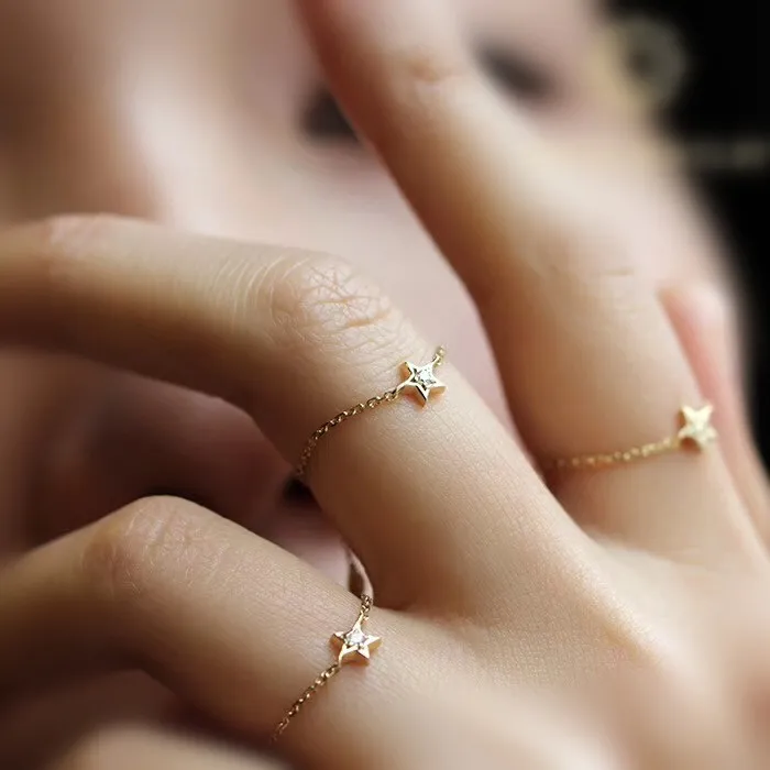 Name: 18K gold smiley face five-pointed star light luxury series fresh diamond ring chain ring adjustable hand size