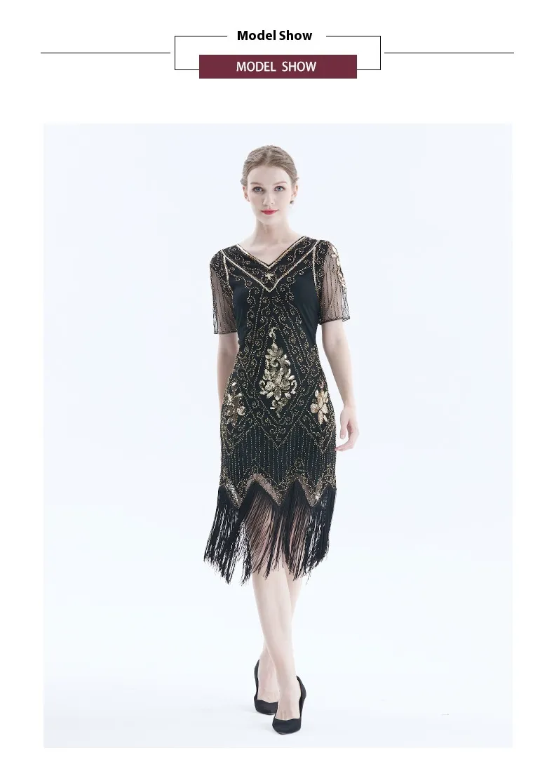 Ensure that the dress fits comfortably and flatteringly. The 1920s style typically offers a loose fit, but you still want to make sure the dress fits your body type well. Check the size chart and consider how the dress will hang on your frame. Some dresses feature adjustable straps or more flexible silhouettes, allowing for a more personalized fit.