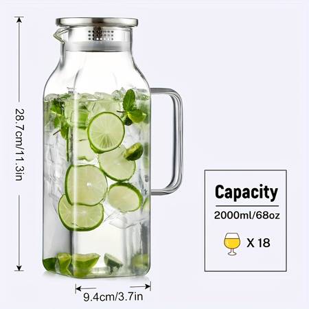 The 1pc 2000ml/68oz Square Glass Water Kettle with Lid and Spout is the perfect solution for serving both hot and cold beverages. Whether you're making iced coffee, refreshing juices, milk, or just plain water, this large glass kettle offers a sleek and practical way to serve your favorite drinks. Its borosilicate glass construction ensures durability and heat resistance, making it suitable for all seasons, from spring and summer outdoor gatherings to cozy winter tea time.