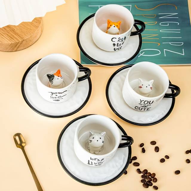 Whimsical and Fun Design: The hidden 3D cat adds an unexpected touch of joy to your tea or coffee time, making it perfect