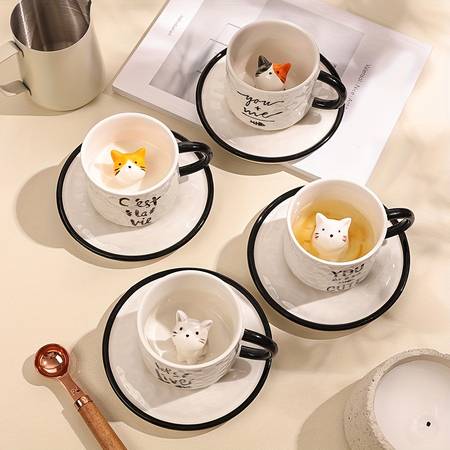 Why Choose the 1pc 200ml/6.7oz Japanese Lovely Ceramic Hidden 3D Cat Inside Cup and Saucer?
