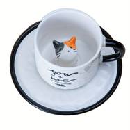 1pc 200ml/6.7oz Japanese Lovely Ceramic Hidden 3D Cat Inside Cup and Saucer A Whimsical and Practical Gift for Cat Lovers