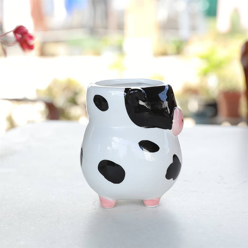 Unique Cow-Shaped Design: Featuring black and white spots, pink ears, horns, and hooves, this handmade ceramic mug brings a
