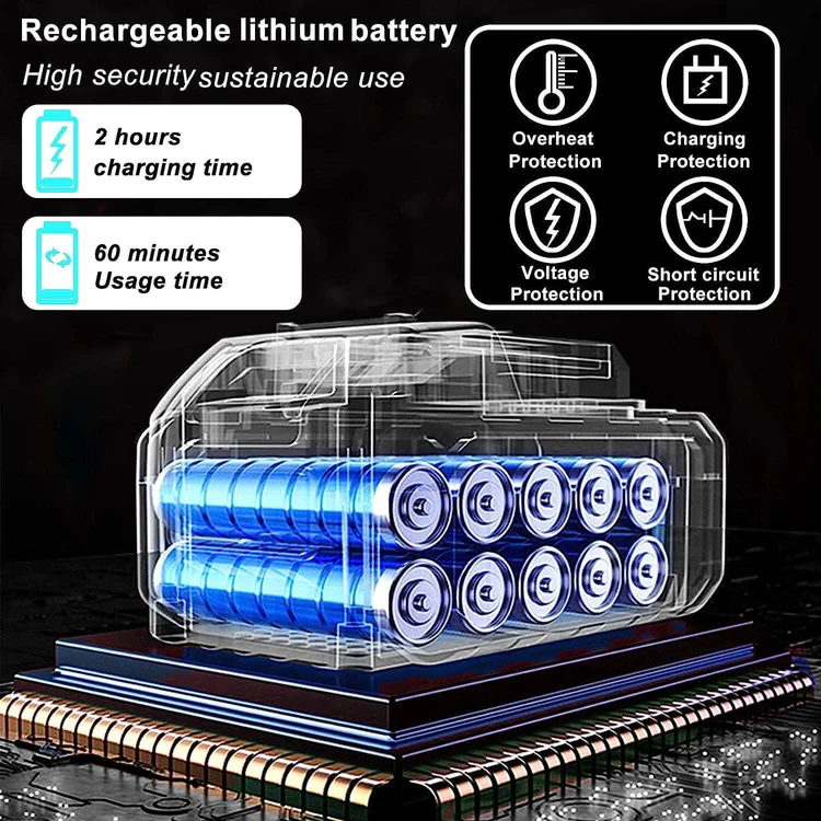 Our cordless electric chain saw is equipped with 2 batteries with a capacity of 13000mAh, which is twice the size of batteries on the