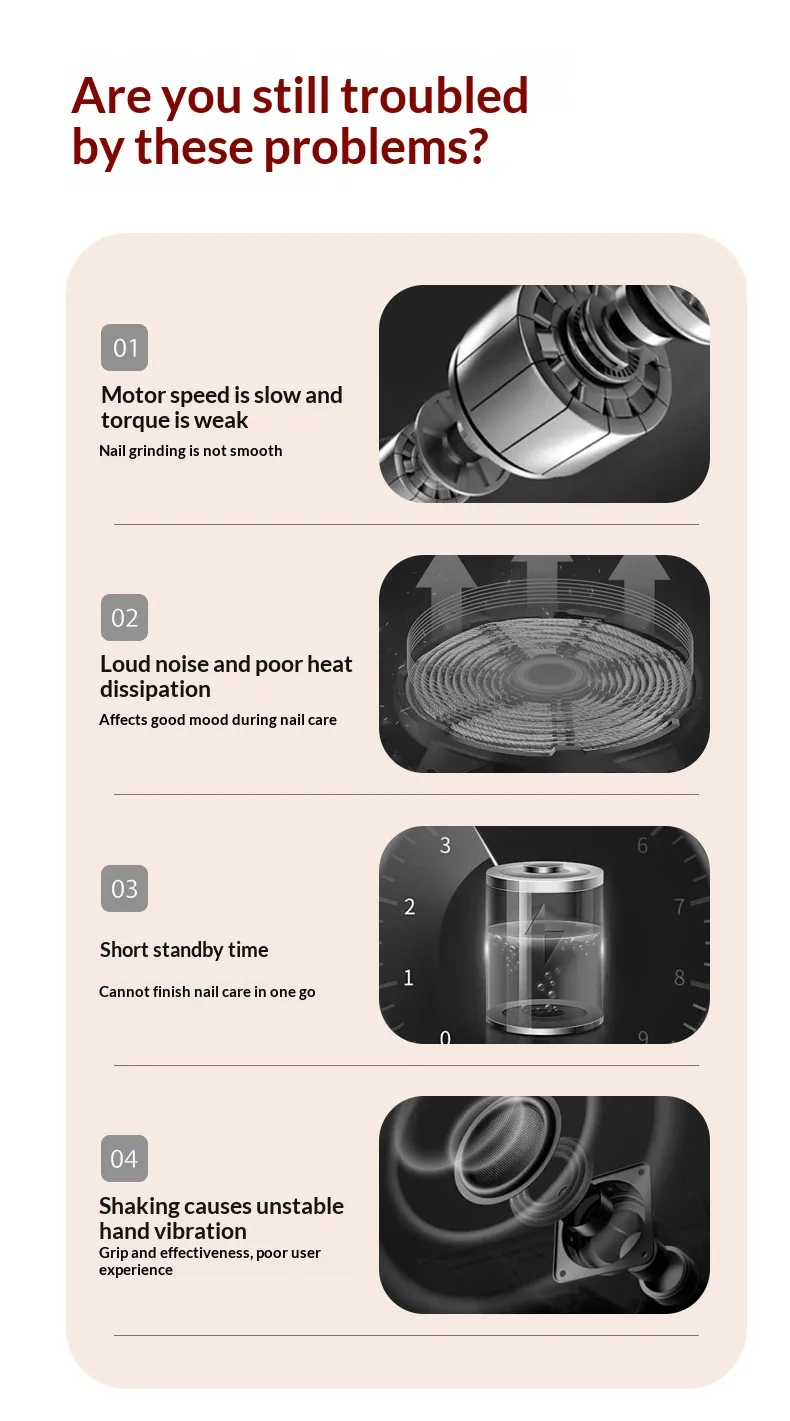 efficient nail care. Whether you're polishing, grinding, or shaping, this multifunctional tool provides everything you need for smooth,