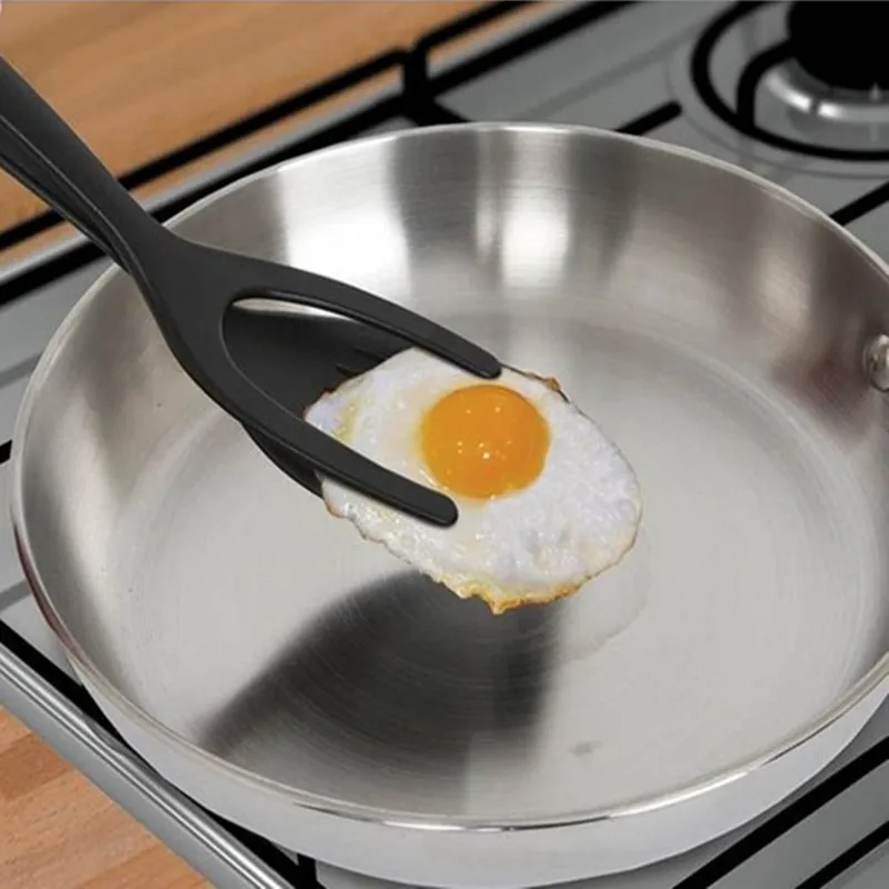 2 In 1 Grip And Flip Tongs Egg Spatula Tongs Clamp Pancake Fried Egg French Toast Omelet Overturned Kitchen Accessories