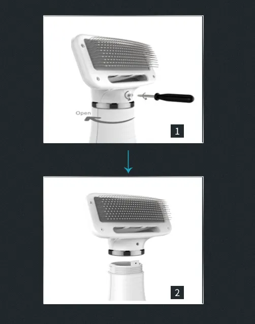 The built-in hair dryer delivers controlled airflow suitable for pet grooming, helping dry fur after baths, wet walks, or rainy outdoor play. At the same time, the slicker brush gently detangles and smooths the coat, helping remove loose hair, light knots, and shedding fur as drying takes place. This simultaneous action reduces grooming time while improving coat appearance.