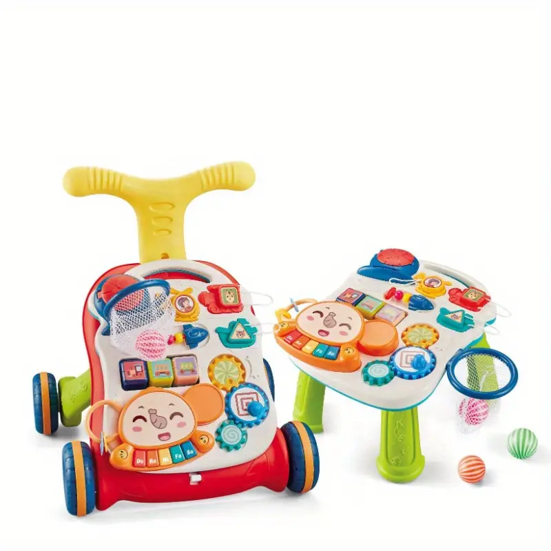 Help your baby take their first steps and explore the world of play with the 2-in-1 Sit-to-Stand Baby Walker and Activity Center, designed to support early development in infants and toddlers aged 0-3 years. This multifunctional walker offers a safe and interactive way to encourage motor skills, balance, and coordination while keeping your little one engaged with fun activities. The innovative design combines a sit-to-stand walker with an activity center, making it an ideal educational toy that grows with your baby.