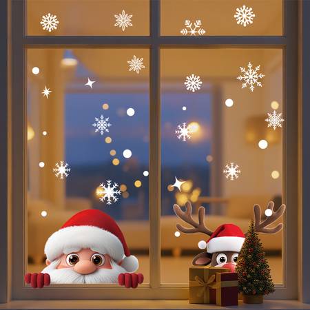 Description – 2 Sheets Cute Christmas Window Clings