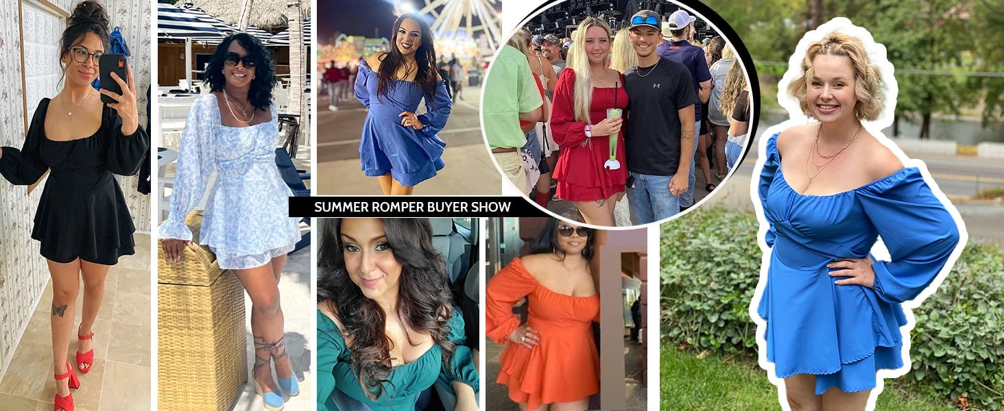 This cute romper dress with unique neckline, you can wear it as a low square neckline or shoulder off, both of the two ways can creat a chic and sexy style.