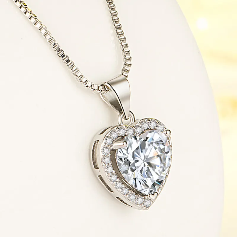 2023 New White Diamond Imitation Moissanite Heart Pendant Necklace Fashion Collarbone Necklace For Girlfriend Jewellery Gift