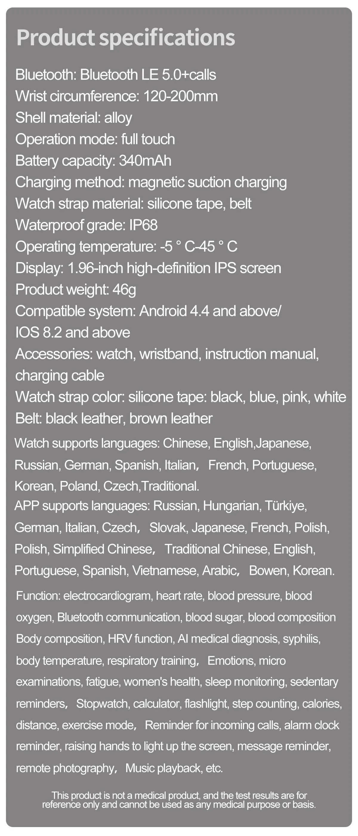 Equipped with high-precision sensors, the 2024 AI Medical Diagnosis Smart Watch provides real-time tracking of critical health metrics. The